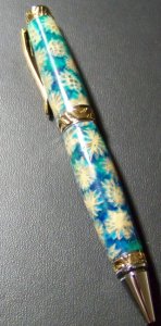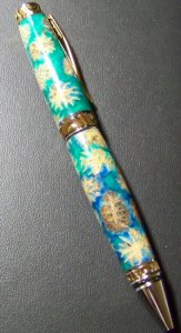 Well it was my birthday yesterday and among other things I got a WC gc from my sister. So, I went to WC today and bought some stuff including an ultra cigar kit. Some of you may remember when I made the elephant pen using a blank Jeff Powell made. Well he also included this one for free and I had no clue what was inside. So today I decided to turn it since I was off work. To my amazement and surprise it looks like it has some sort of pods in there. I obviously had to use the ultra kit I just bought to showcase this blank. So thank you Jeff! This was one cool blank to work with. Even after 10 thick ca coats I can still feel some textures from the pods, but I think it is cool personally. I hope you all like it as much as I do.