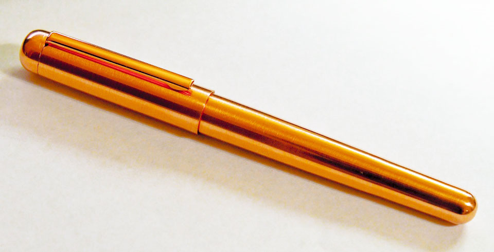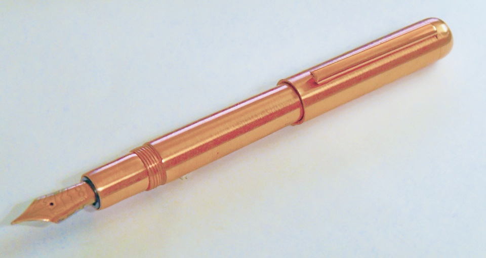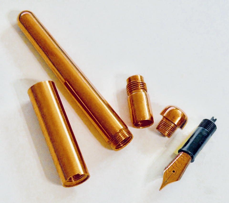 I though I would oblige them.... so I started of with a 1/2" round bar of copper, a Bock Fine Stainless Steel Nib and an electroplating rig, copper plating electrode and some kitless tools came up with this creation---a Touch of Copper. Hope you like it.