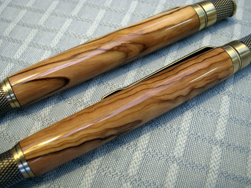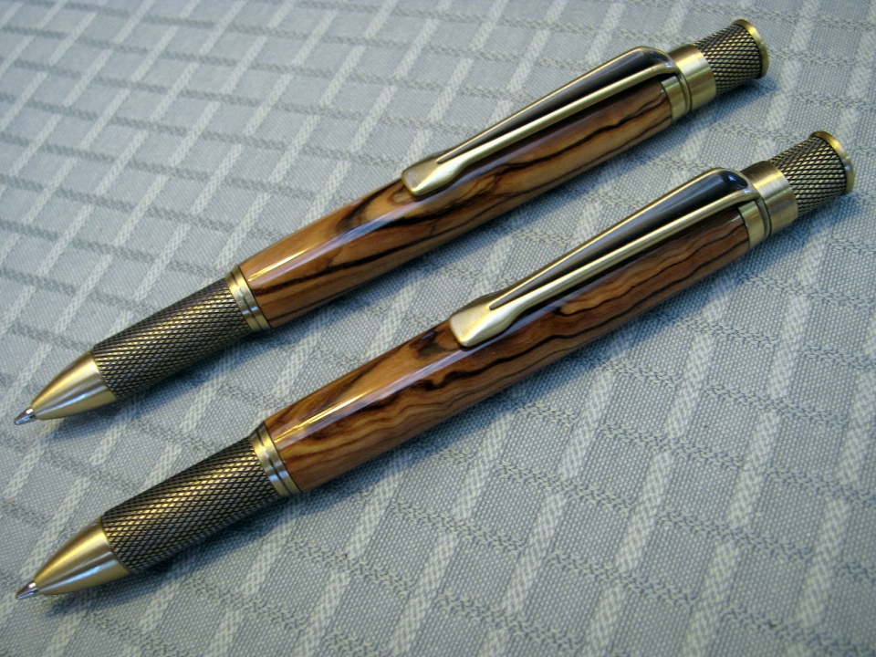 I had fun making these 3 pens this weekend.I had bought 10 nicely figured BOW blanks on eBay,and got these kits in antique brass to go together well.