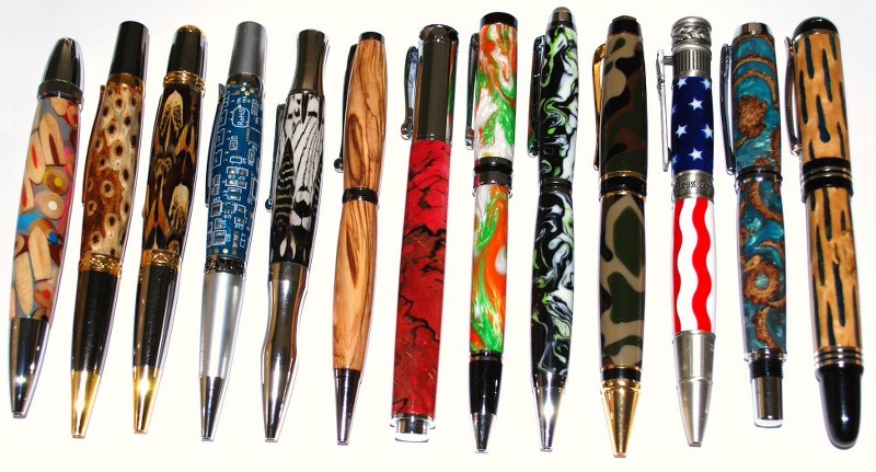 The last is a group picture of the rest. They were donated to a local kids swim league fund raiser. They like a variety and it allows me to make pen styles I dont usually make.