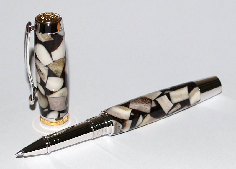 The first is a personal cast I made with antler pieces and black and bronze tinted alumilite on a Jr Gent, finished with CA. Finally, a way to use up all of those little antler pieces and broken blanks from drilling. (lol) It was donated along with the wood pens I posted last month to an outdoorsman group for their scholarship fund.