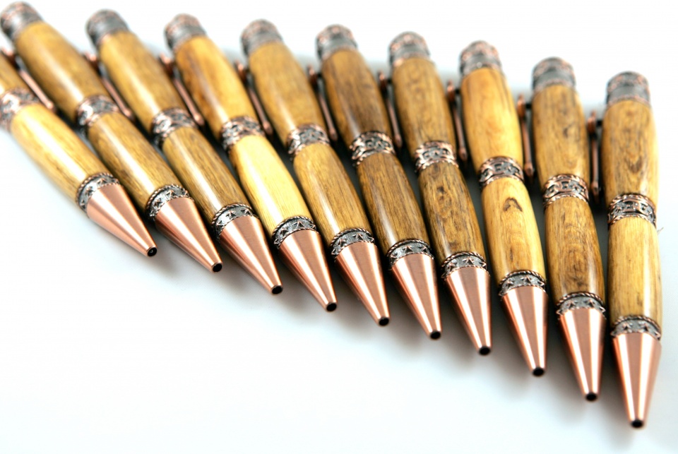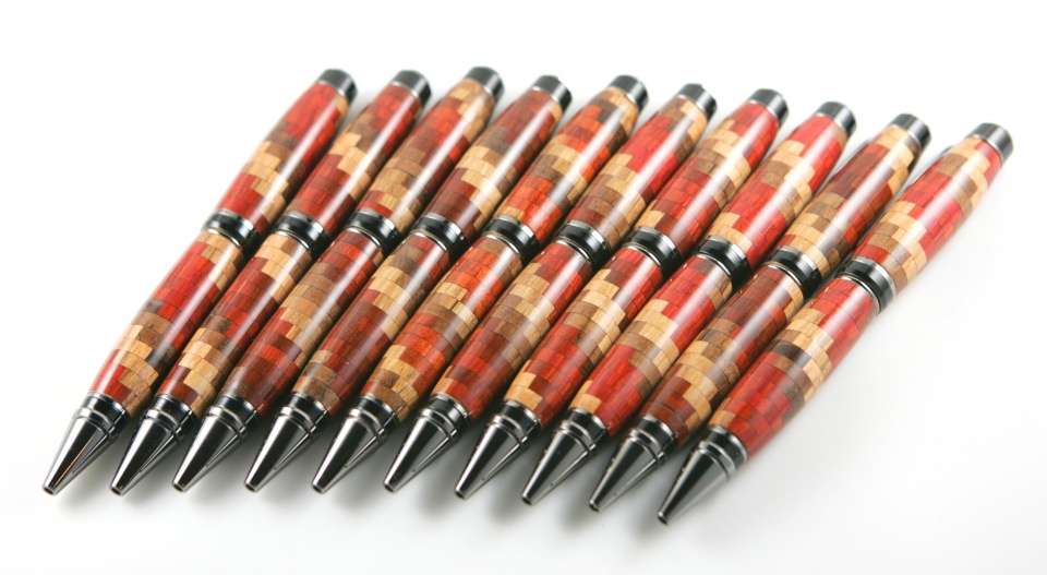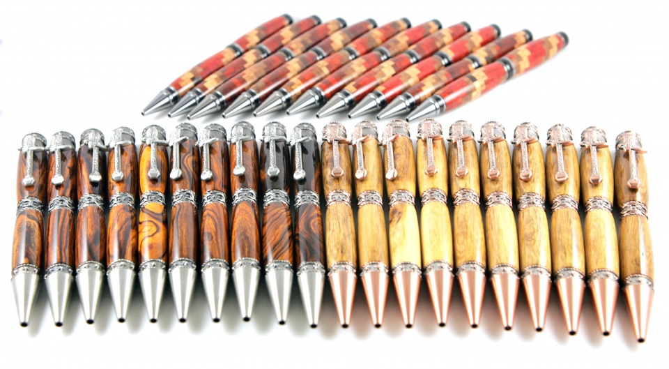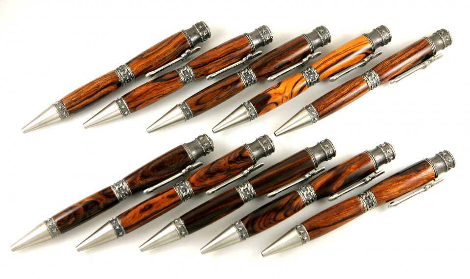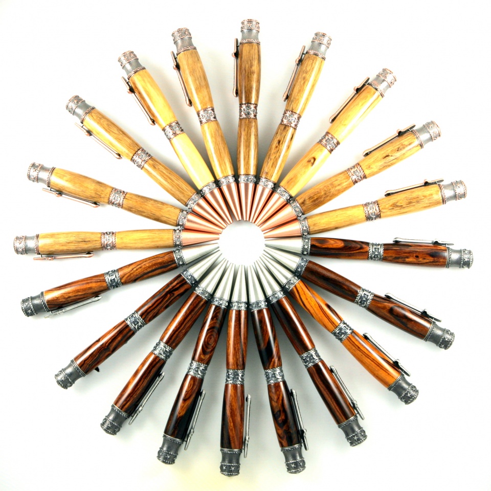 Here are my 30 pens for the week. The segmented cigar pens are made from hickory, walnut, and redheart and have about 90 pieces each. The cowboy pens are made from ironwood and saguaro. They all have a CA finish. Any thoughts are welcome.