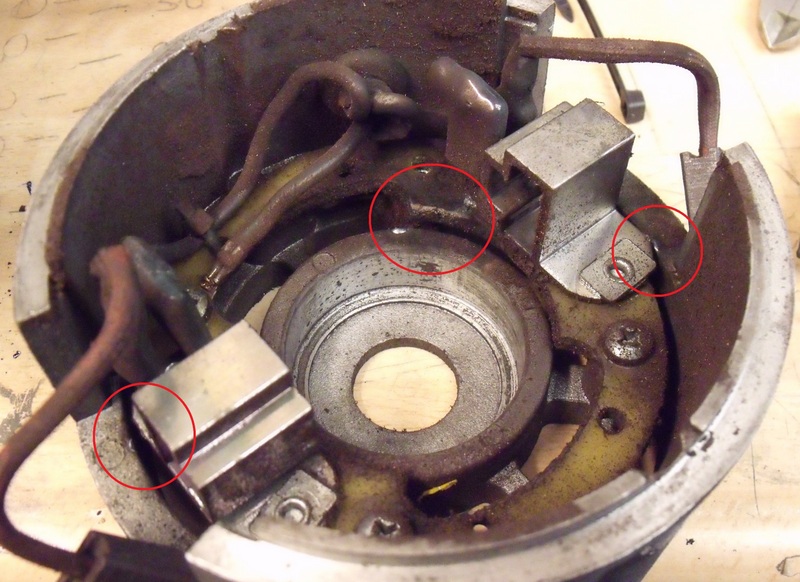 Electricity will jump a wider gap from sharp corners than it would if the corners were rounded. So after cleaning it up, I simply rounded all the sharp corners where carbon is likely to build up.