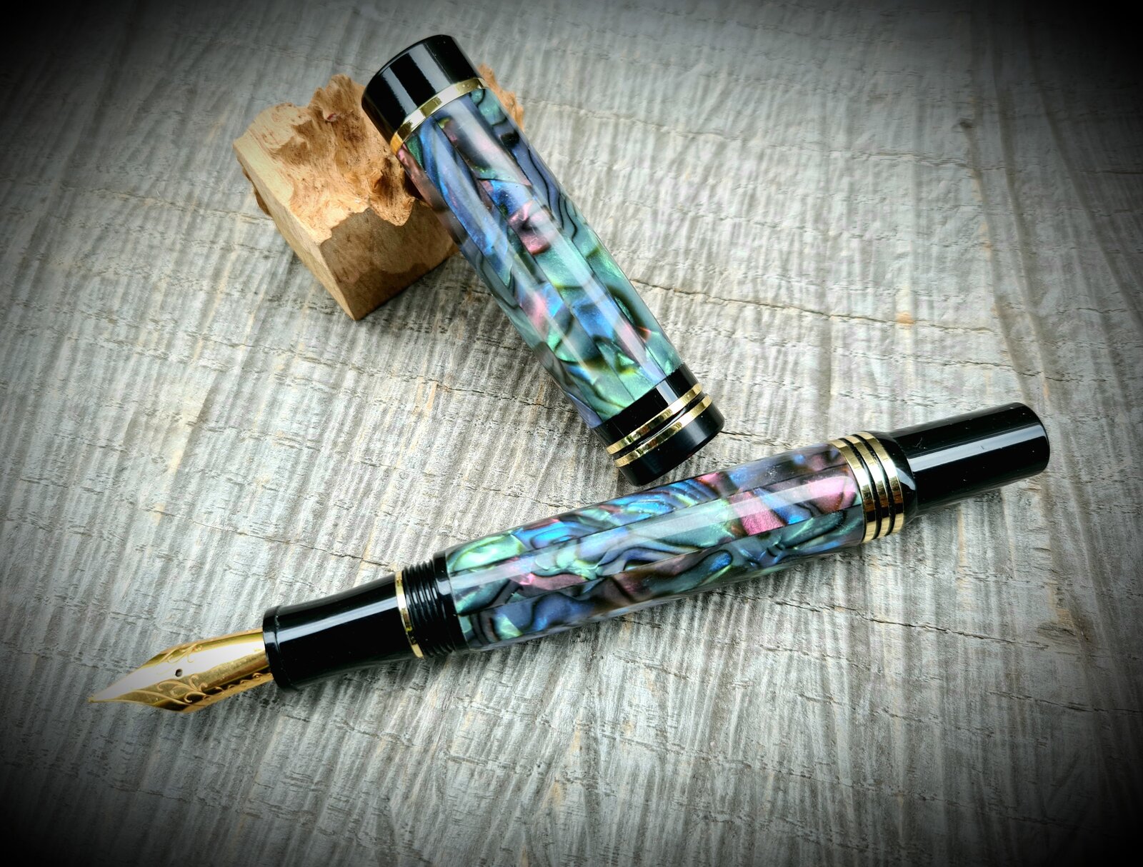 Good evening John. When cutting the abalone veneer. Are you using the abalone veneer with the 3M adhesive attached to the back of the veneer? Or non Adhesive. By the way. Great job on the Pen gathering show last week. Really enjoyed it. David R.Very nice! I've made a few liken that with different colors of celluloid. They cast nicely as long as they are thin strips. Ive bought them in sheets and strips. I just wish the strips came a little bit narrower.