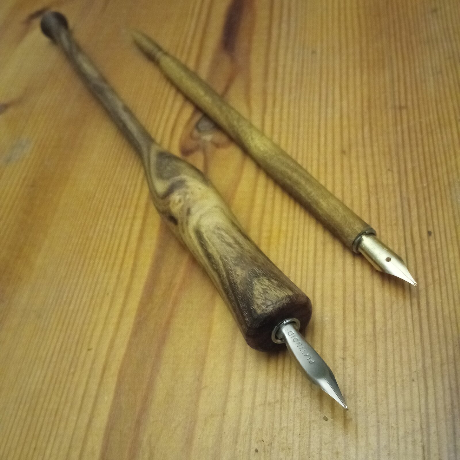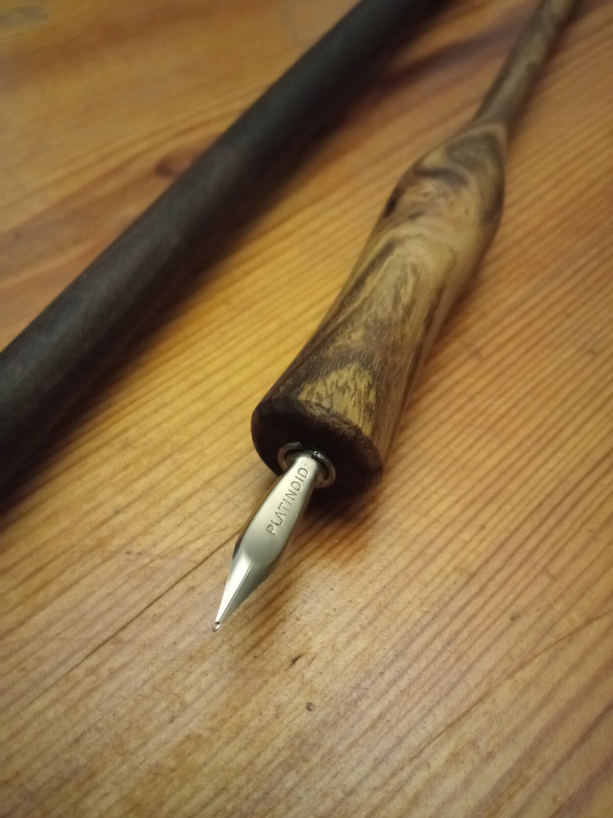 Another dip pen i made yesterday from acacia ( robinia pseudoacacia). It came out rather chubby but i like it a lot; i think that this wood is really beautiful and underrated. I used a pen nib that i found at a local store; it was forgotten in a little box and belonged to the owner's grandfather. If anyone knows anything about these so called platinoid (Leonardt & Co) nibs i would be happy to learn more. Cheers everyone!!