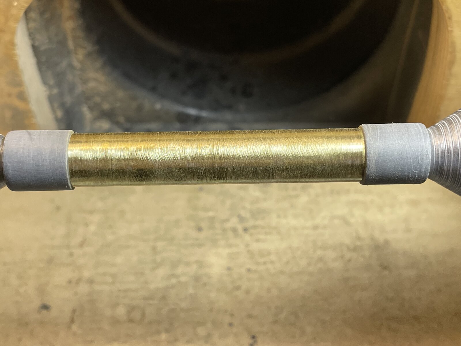First step is roughing up the tubes. Intelligent people will tell you not to do this BUT I do every time with every pen. The first photo shows a brand new pen tube with two shop made 3D printed sanding bushings. I use these to avoid flaring the tube ends with a live center and dead center. They fit the inside perfectly. Put the bushing/tube/bushing sandwich on the lathe between live and dead centers. The last photo is the tube after 220 grit sanding at 800 rpm's for a few seconds. You can use 80-400, but I like 220 or more coarse.