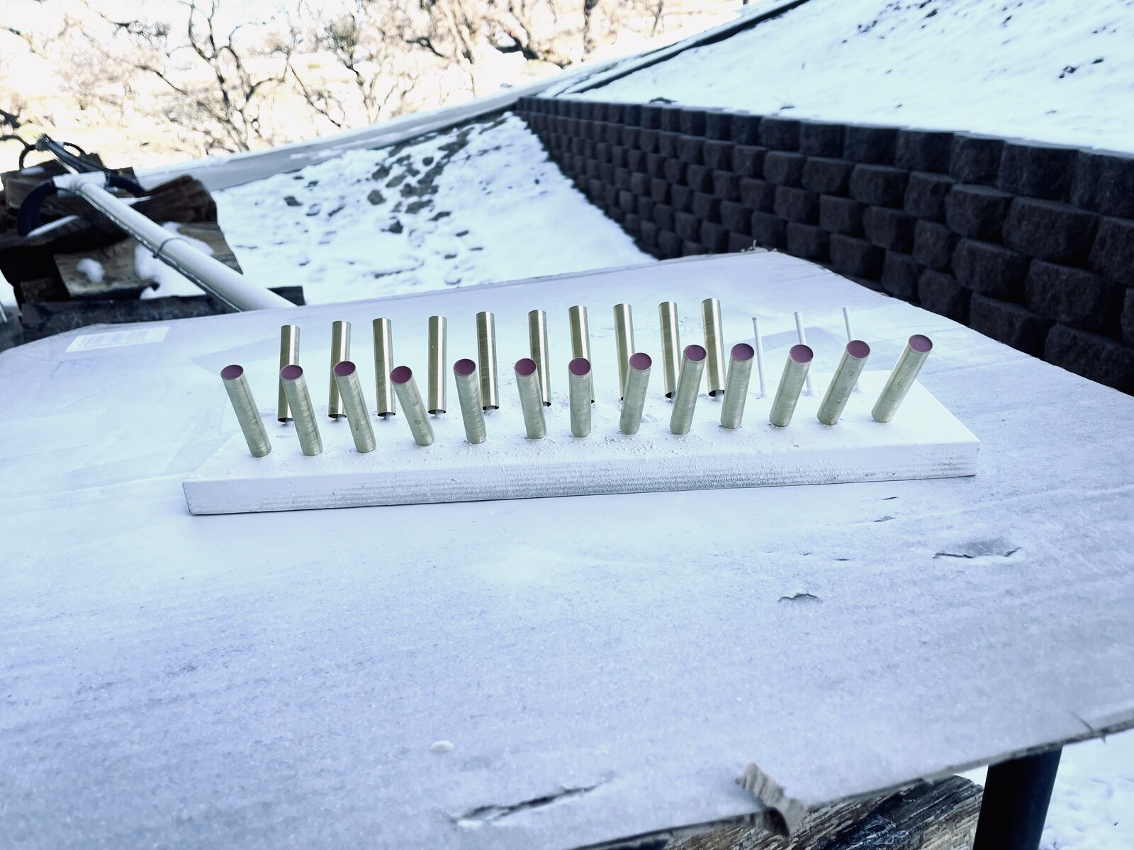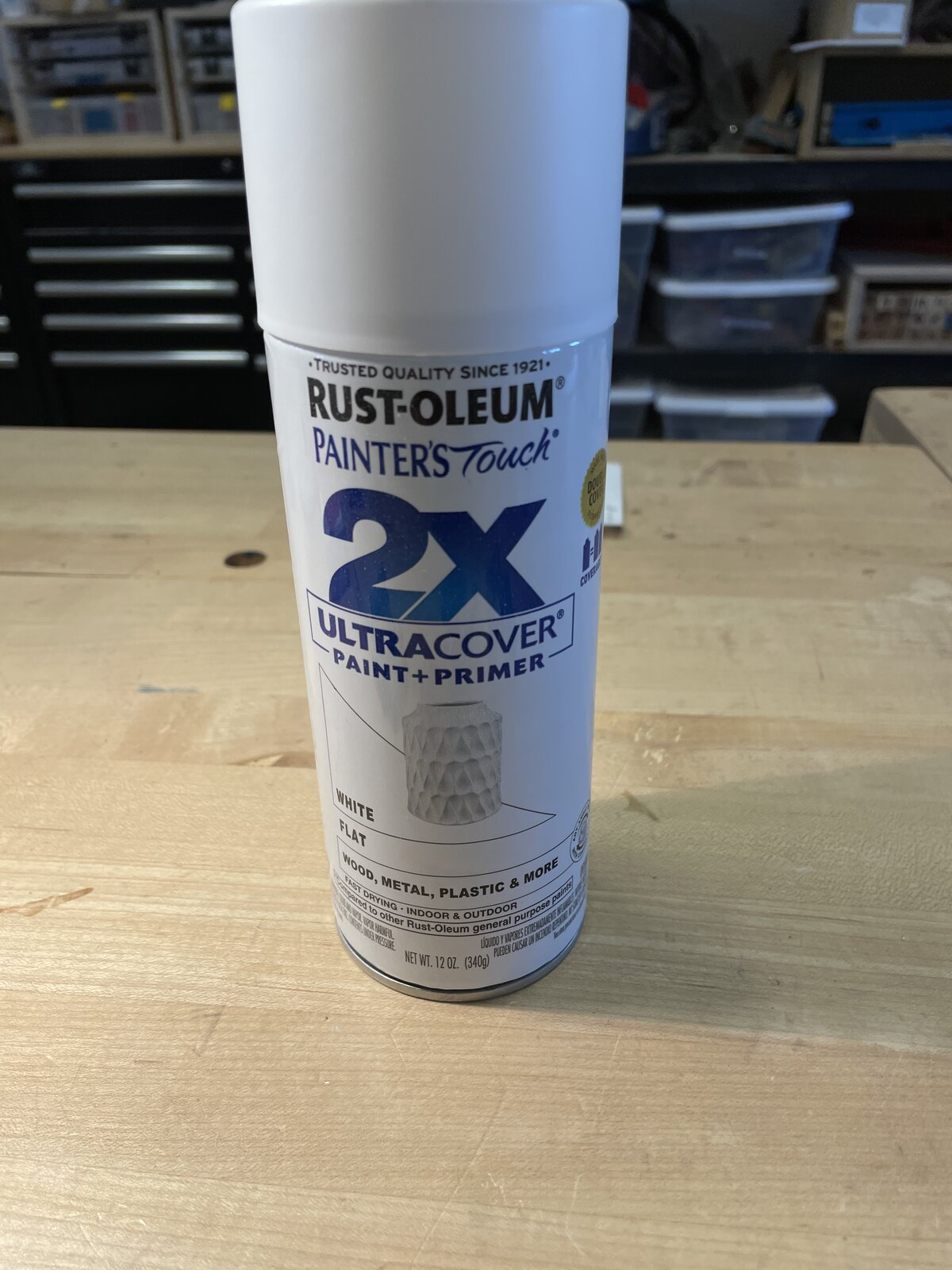 The third part of this phase is painting tube outside of the sanded tubes with spray paint. Visit Home Depot and buy some flat white spray. Shake plenty!!! It snowed here, but I painted outside the shop anyway. Make them fairly covered but don't get drips.