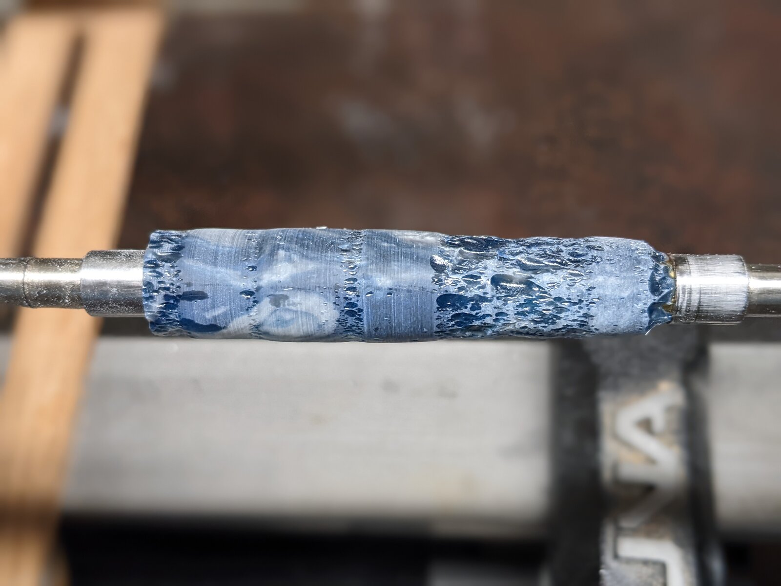 Good eyes, checked the label on another blank. It is an inlace acrylester. I have an Easy Wood Tools carbide set, square, round, and detail. Was using the square to start. Maybe the round would work.Hi Mike,