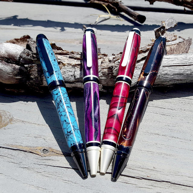 I had some time this weekend that could be spent at the lathe. And, apparently I could ignore how hot it is in my garage. Admittedly, I had to do it in shifts. But, I was able to get four pens finished.