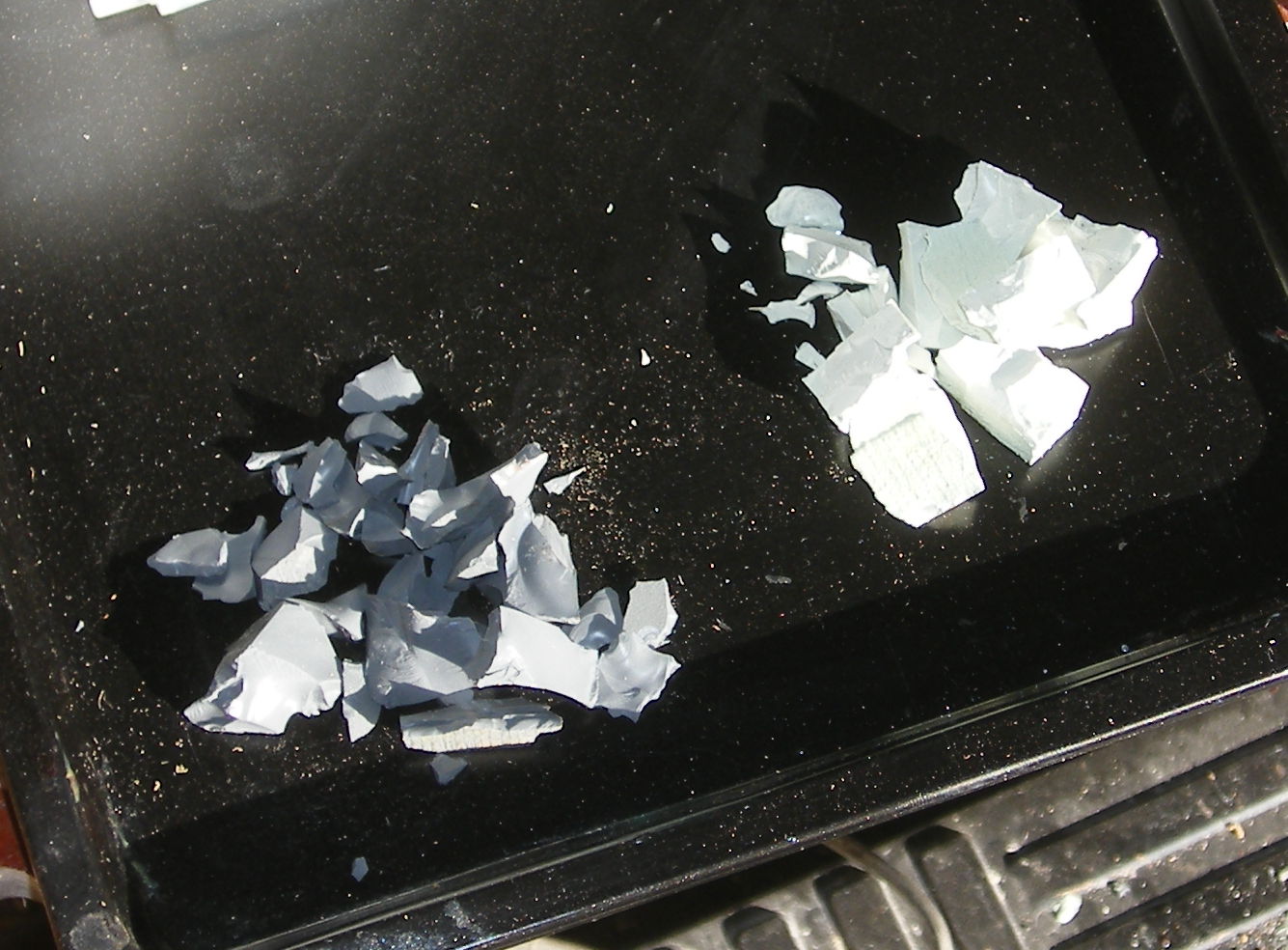 Speaking of fun, here are a couple of plain PR blanks. The plan is to smash them up then set the bits in another colour of PR (probably black) just to see what'll happen...