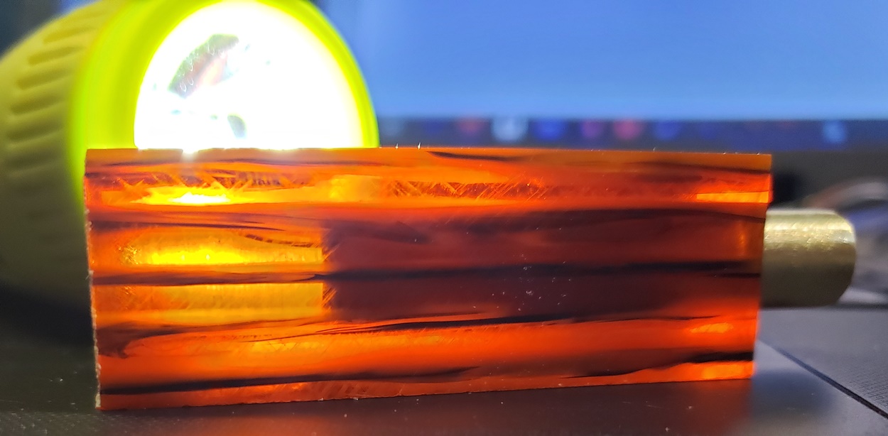 A blank that transparent definitely needs to have the inside sanded and polished. As I always say take a blank and break it down to layers. When all said and done. Top coat, blank material, inside blank material, adhesive, and then tube. Looks like the color will work for you though.