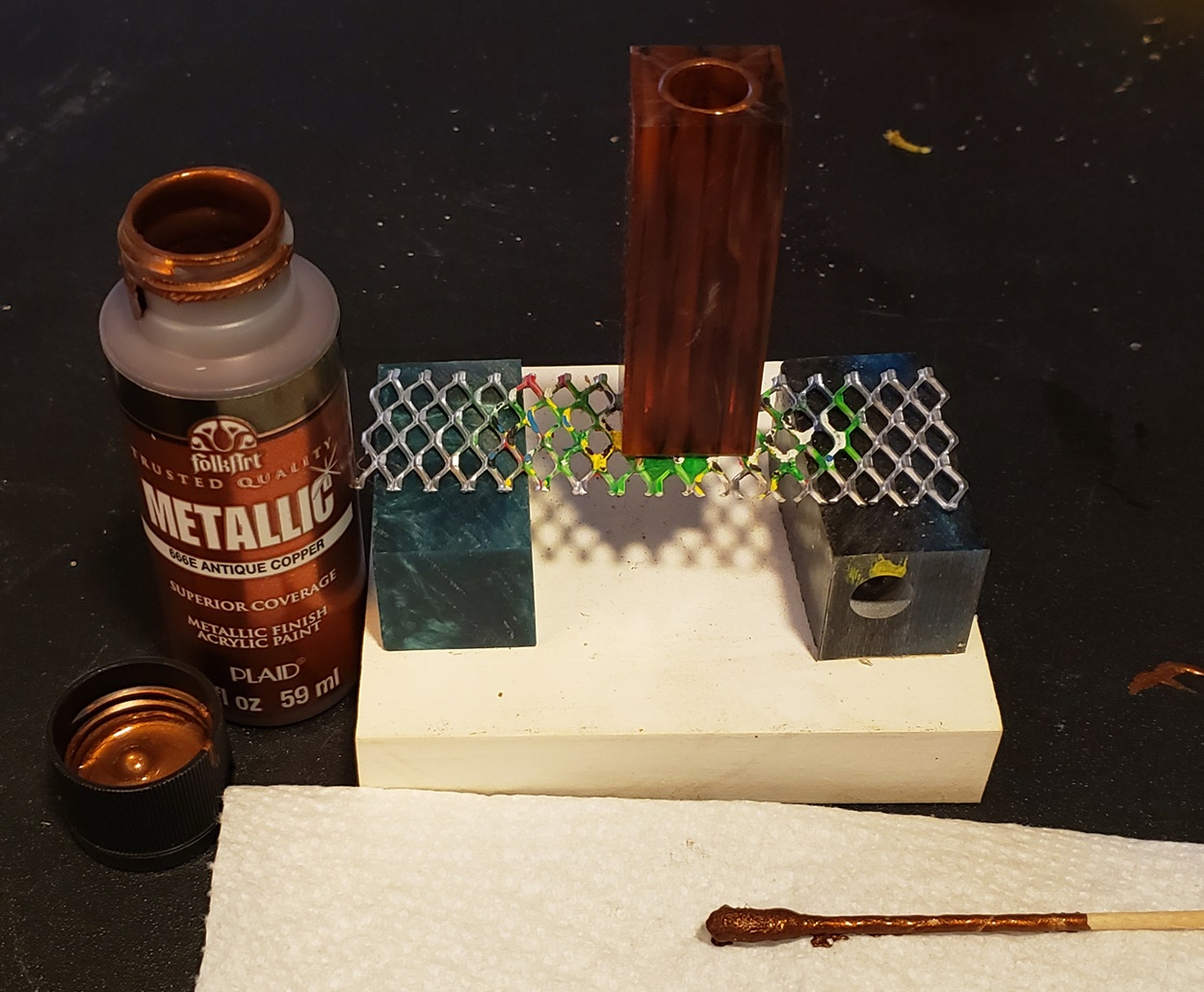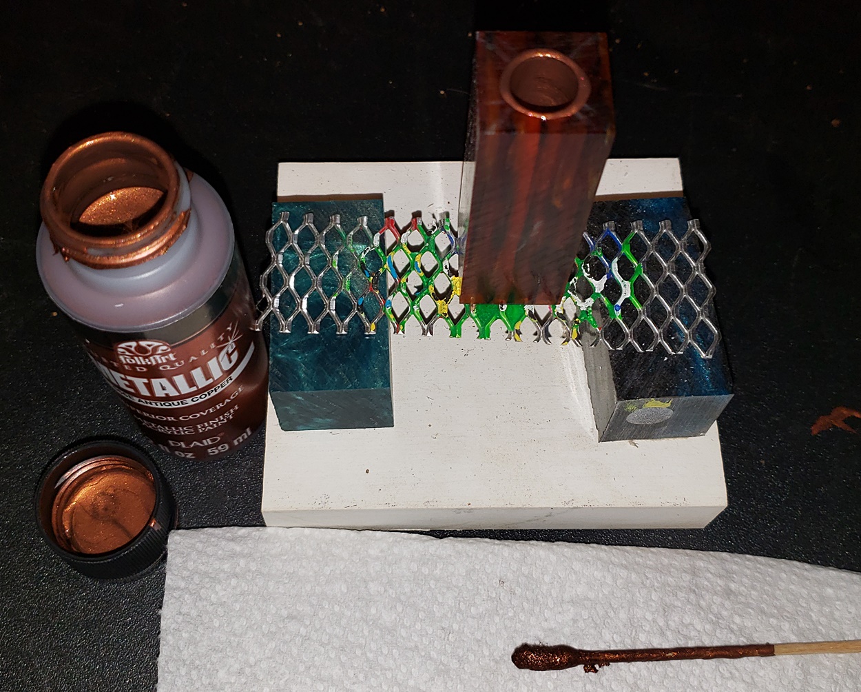I ordered this blank not realizing just how translucent it is. I will be painting the tube, coloring the epoxy, and back painting the blank. But what color? Black? Gold? Copper?