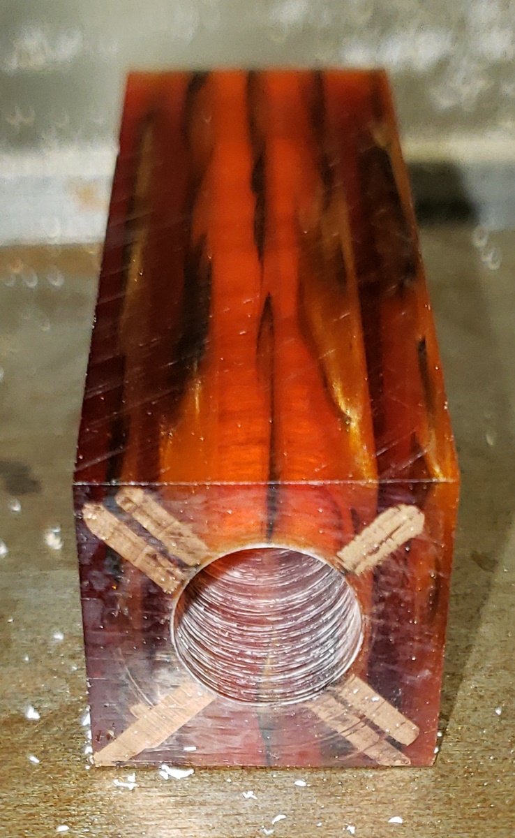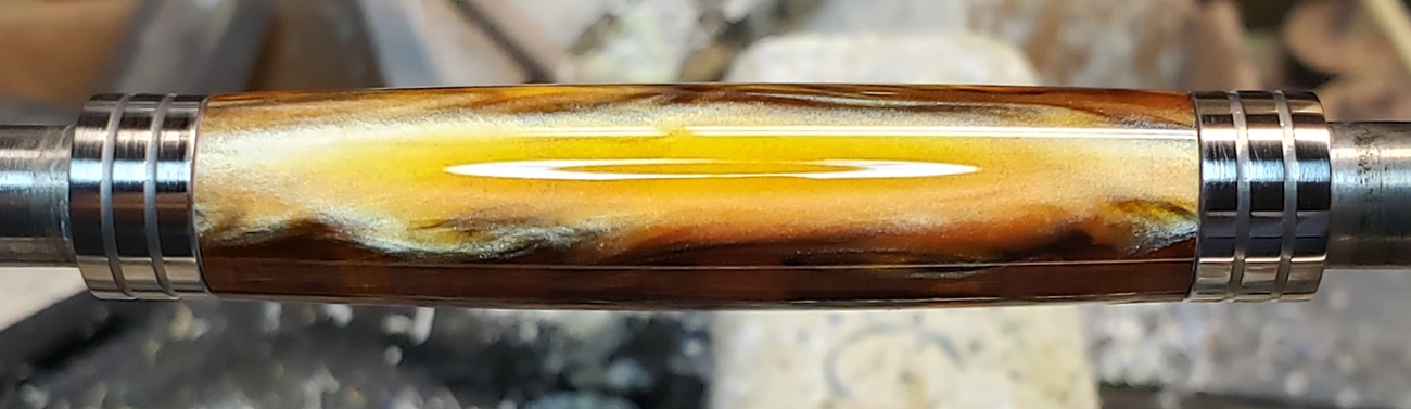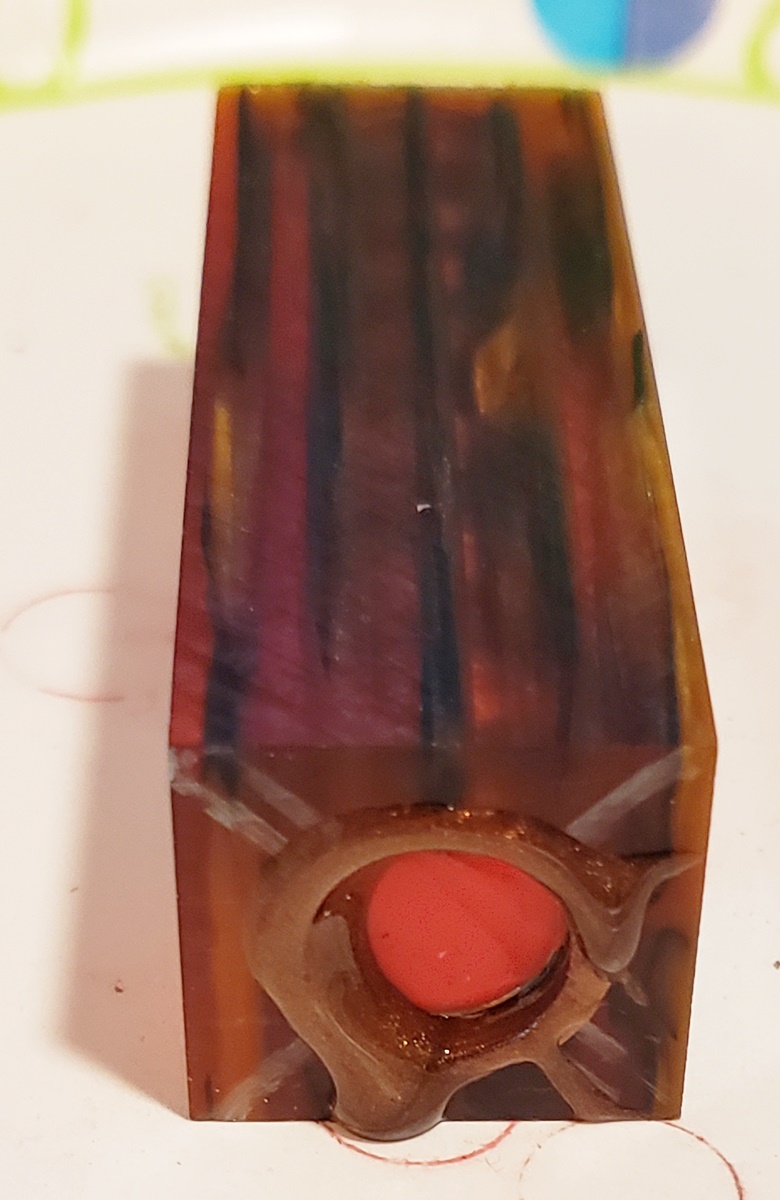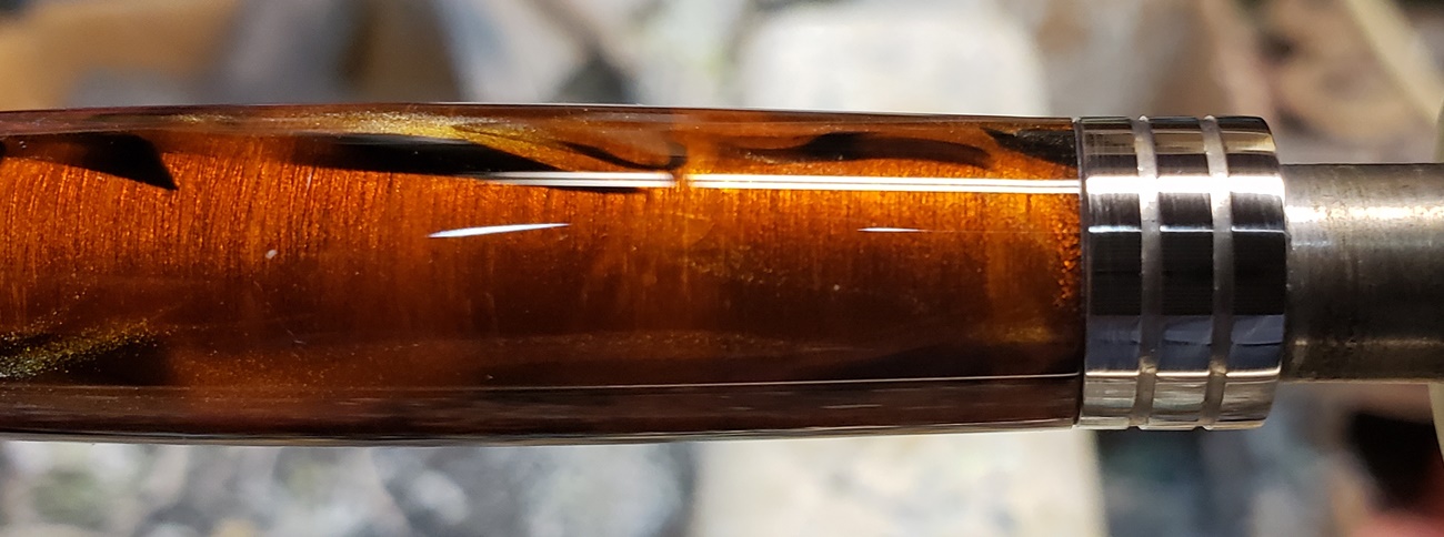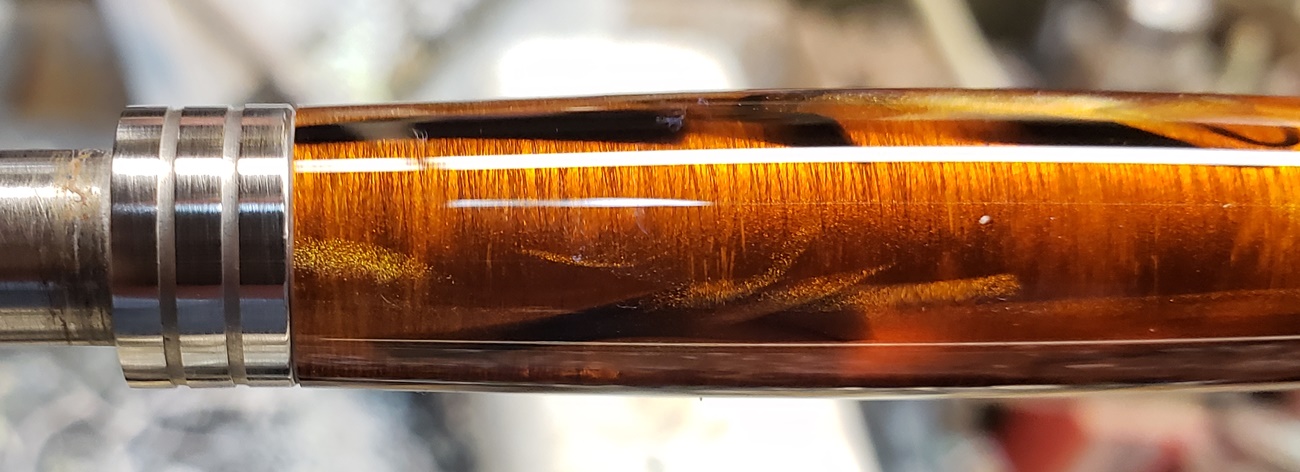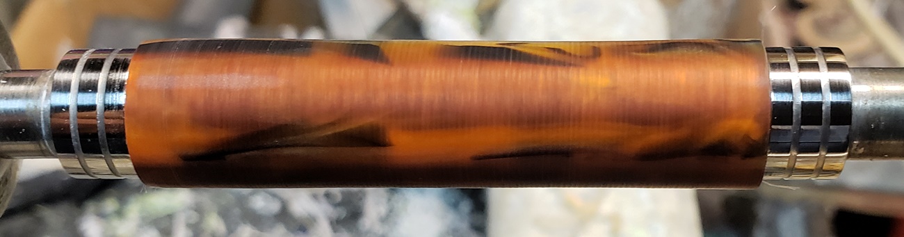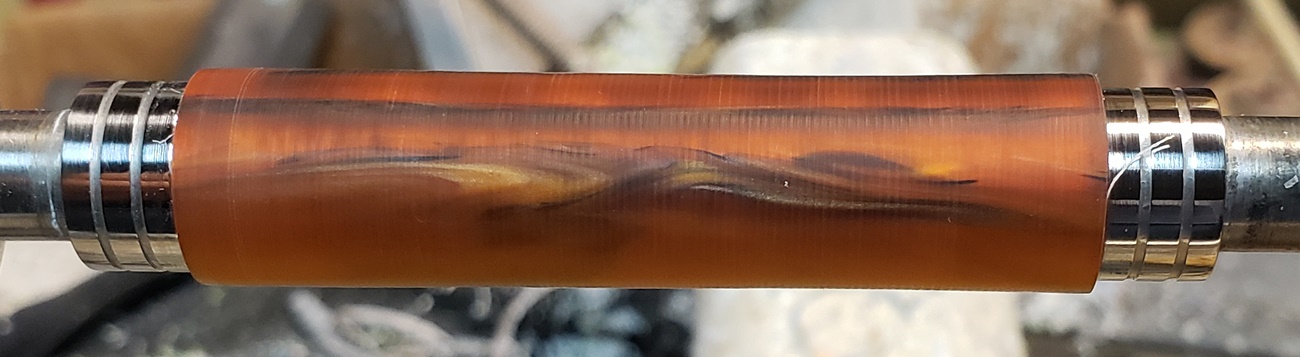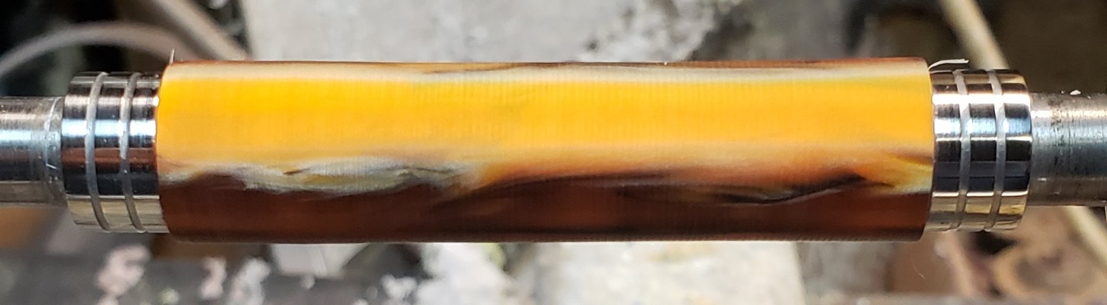 I think the problem is, parts of this blank aren't just translucent, they're downright clear. Normally, with translucent blanks, I back paint, paint the tube, and color the epoxy to prevent seeing the "glow" (for lack of a better term) from the brass tube showing through. Especially at the ends, where the material is the thinnest. But with this blank, everything you do is going to show through.