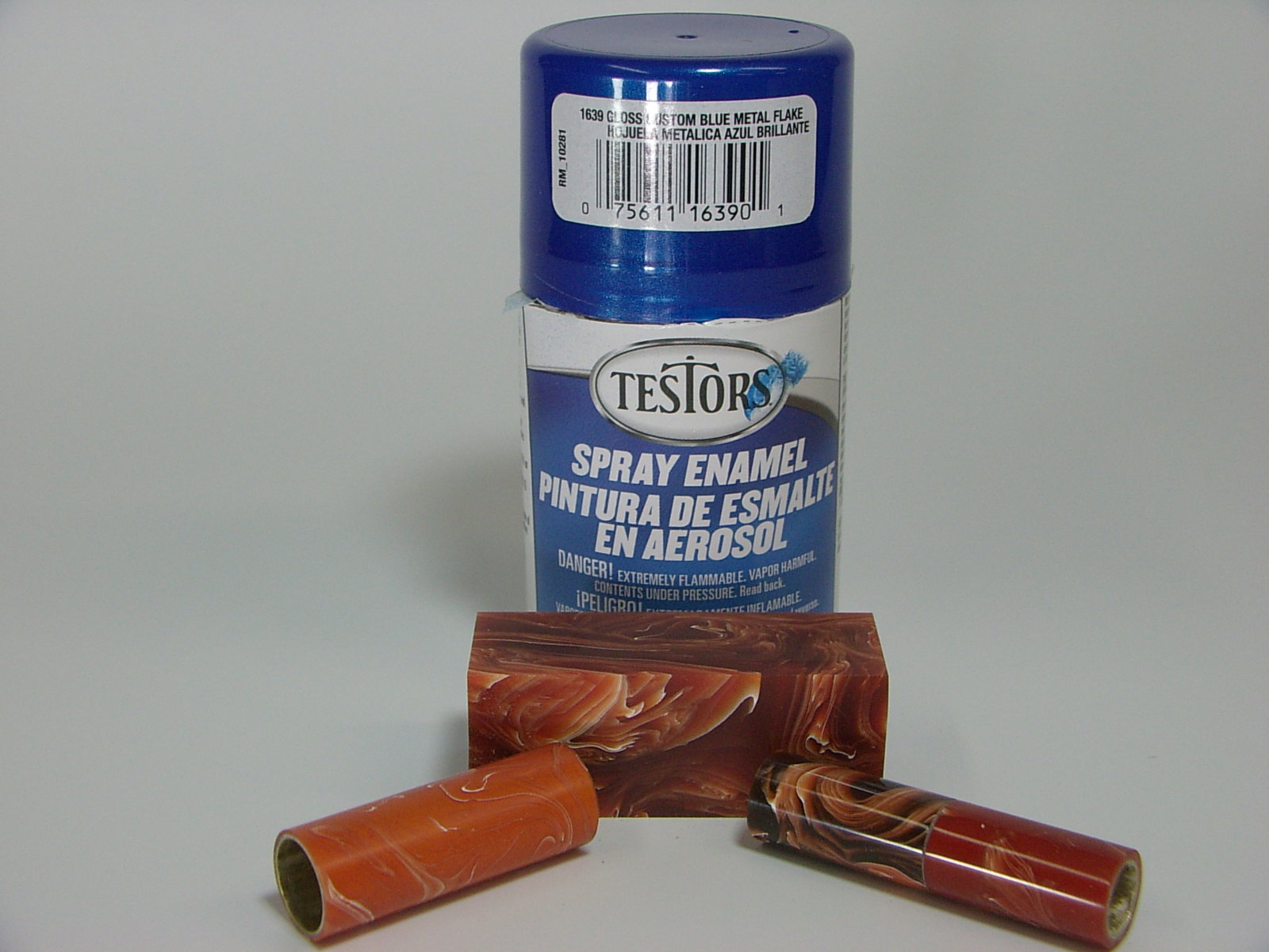 You can turn with tube if you use bushings but not if you TBC. The blank will spin on the tube. Drill and turn blank round down close to finish size and do as Don suggested. Find color, paint and glue in tube and finish turning to proper size. I remember years ago someone made the color stick and shown that idea. I bet is has to be over 10 years ago. Maybe it was Don.
