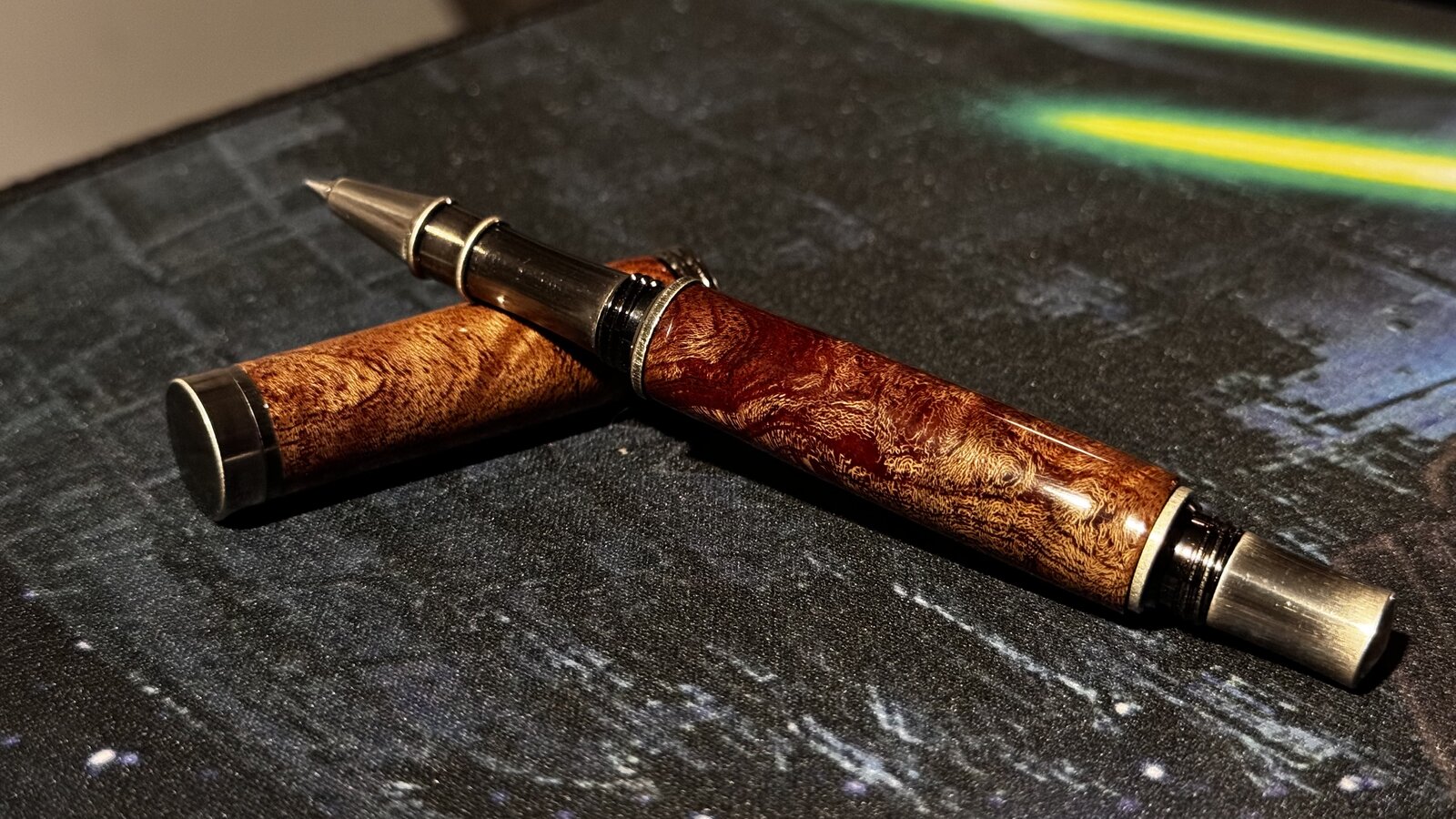 UnStable Sanity Member Joined Aug 6, 2024 Messages 7 Location US, Iowa Aug 13, 2024 #1 Just finished up this beauty. Used the Modesto rollerball kit with African Mahogany. Attachments IMG_8119.jpeg 356.9 KB · Views: 237
