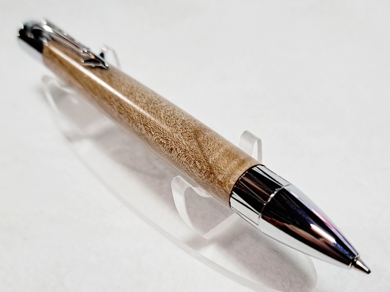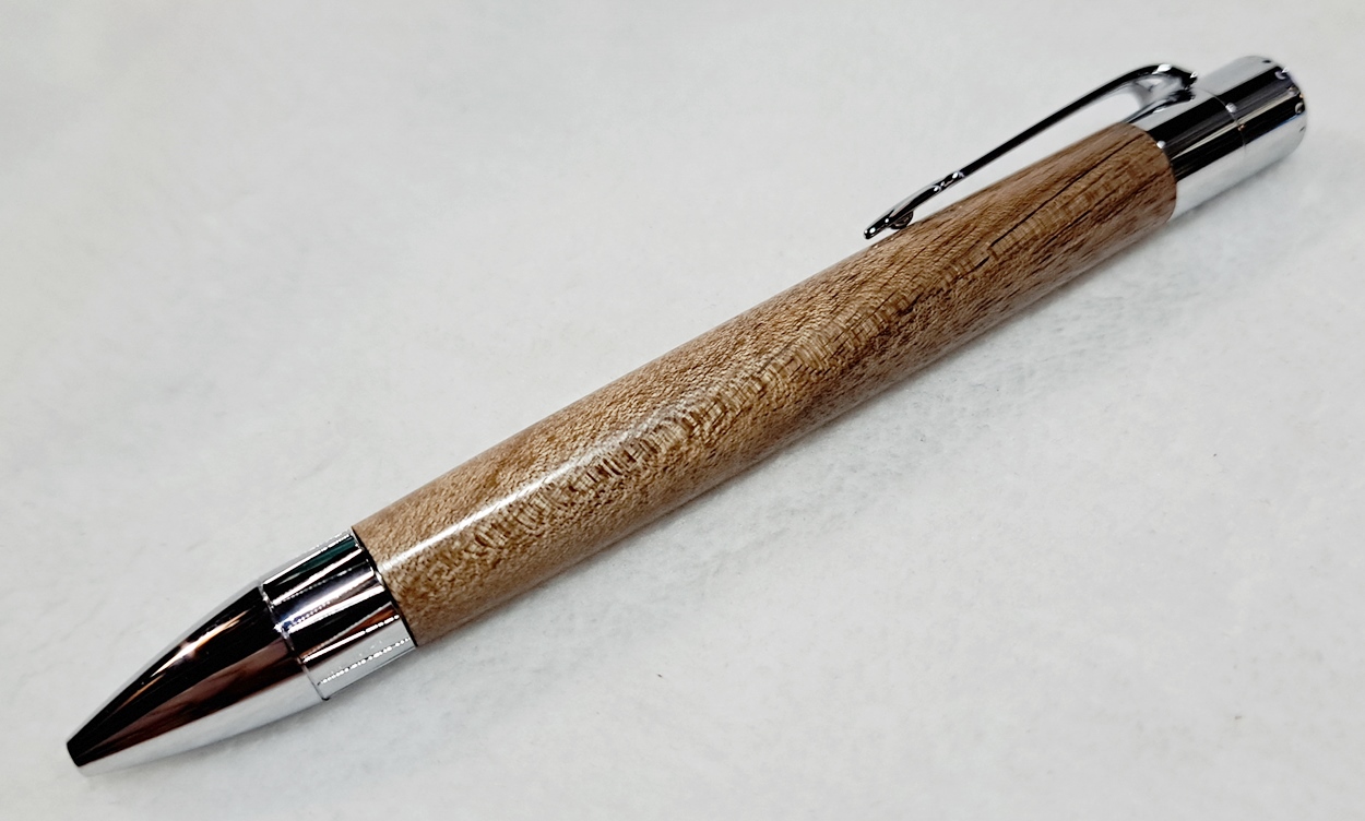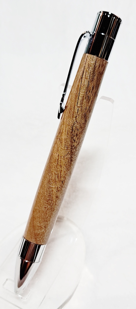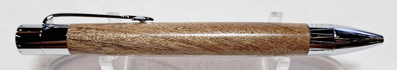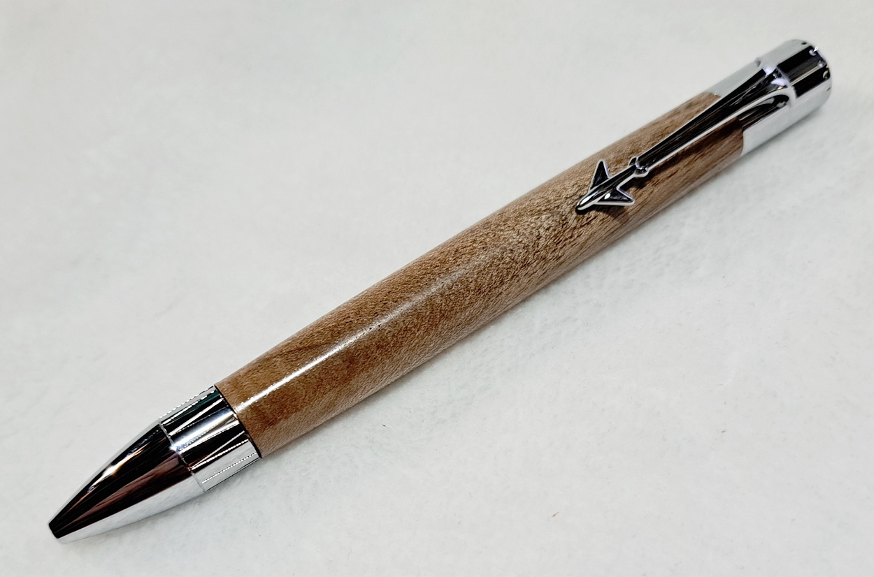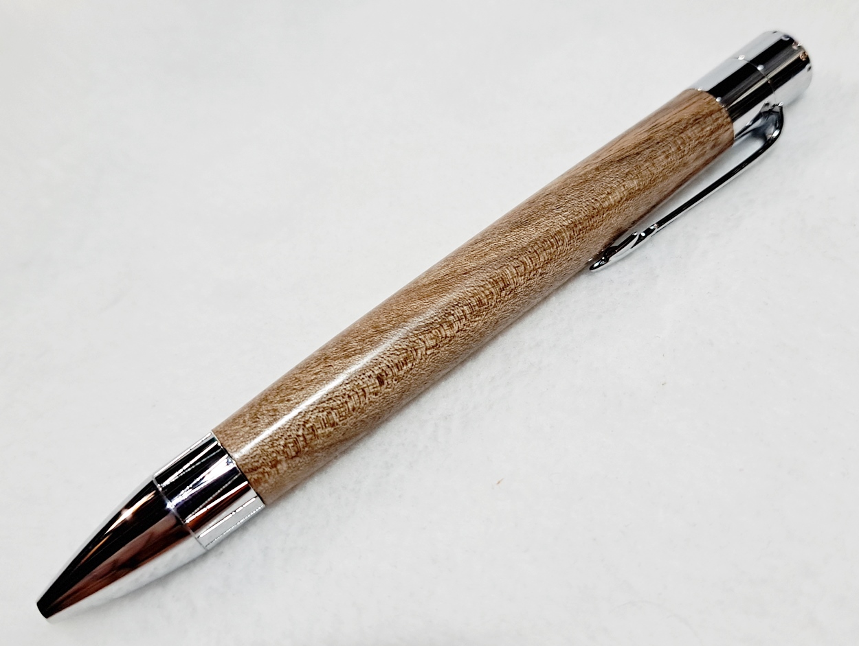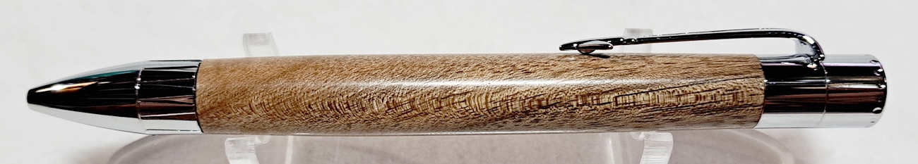 This is an Airliner twist pen in chrome from PSI. The blank is white oak from my friend's father-in-law. It's more figured than other white oak I've turned. The finish is Mylands.