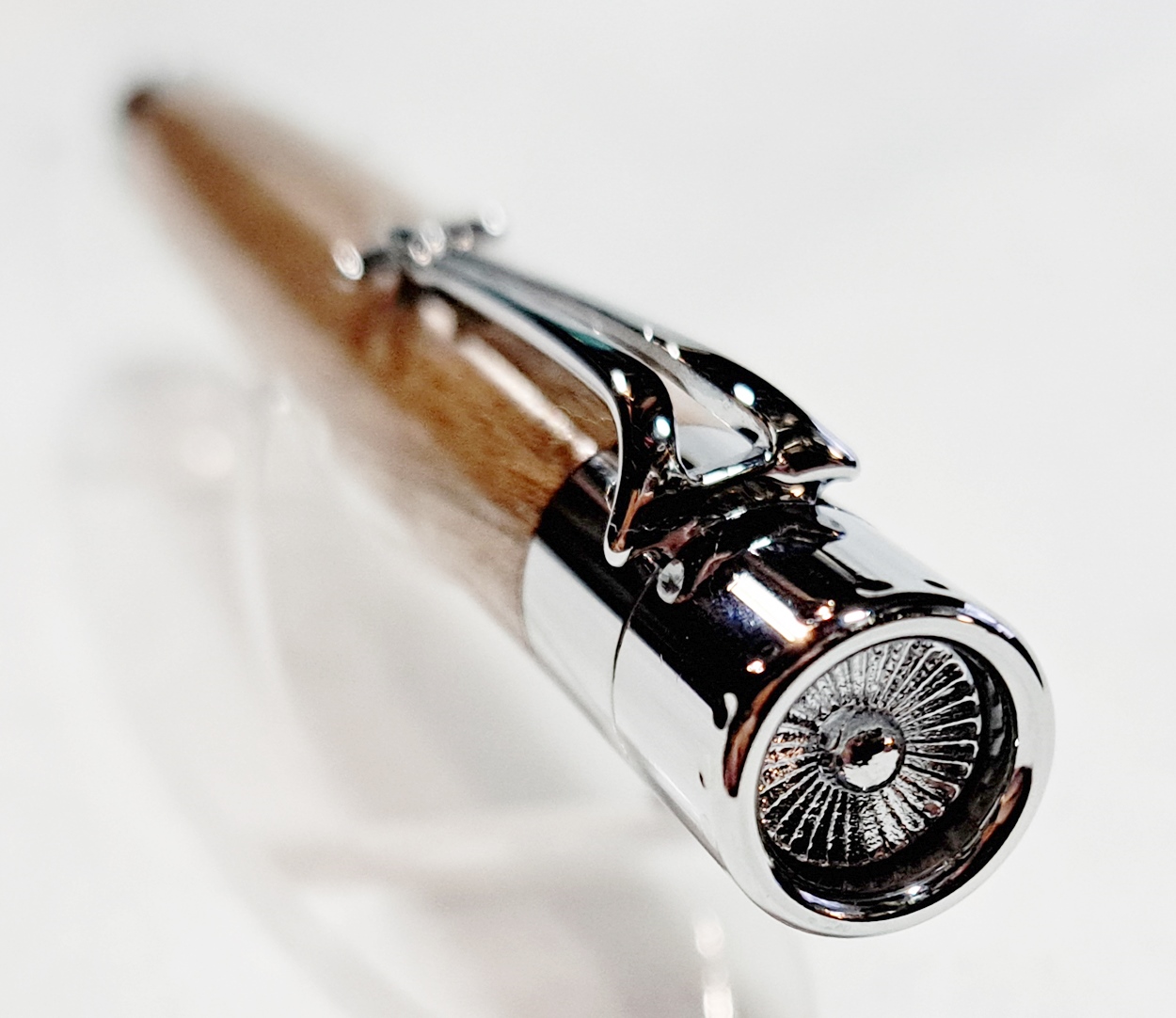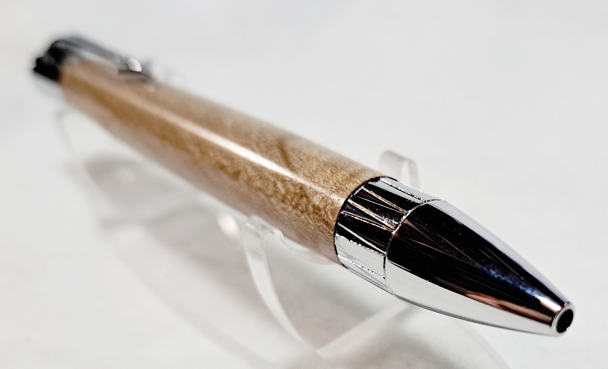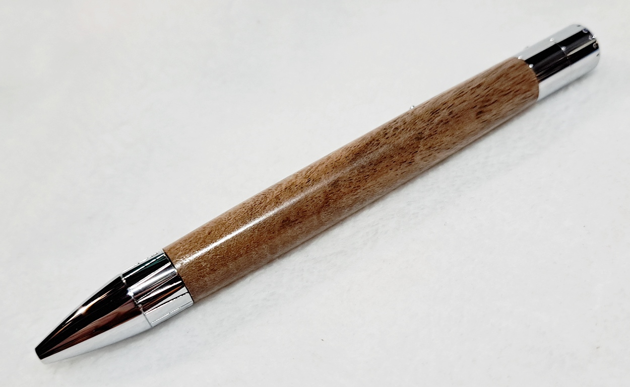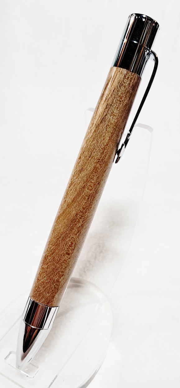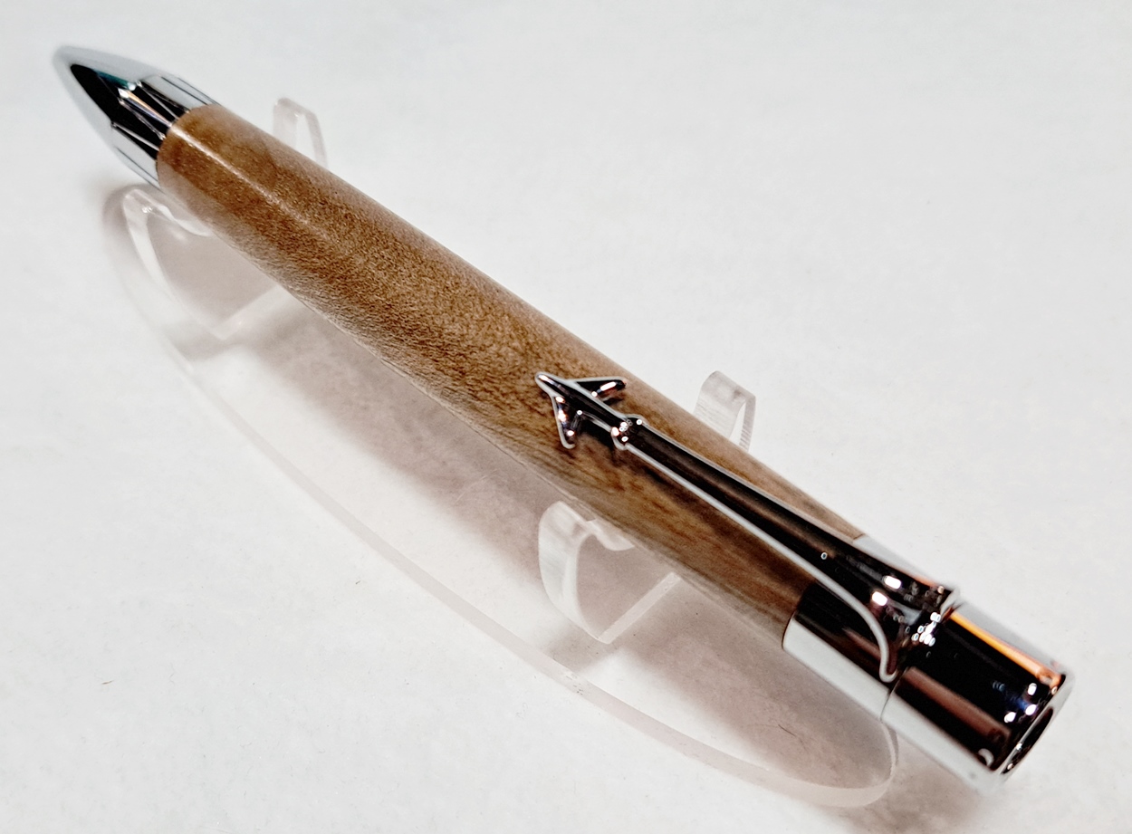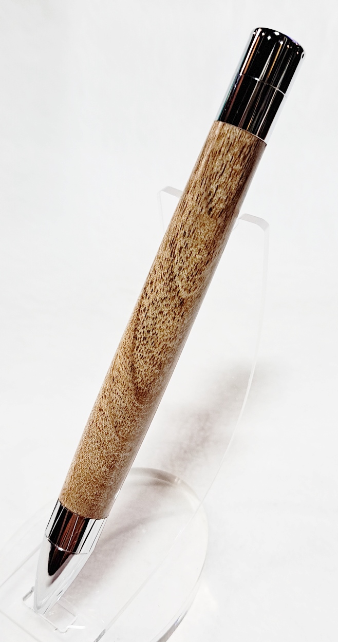 This is an Airliner twist pen in chrome from PSI. The blank is white oak from my friend's father-in-law. It's more figured than other white oak I've turned. The finish is Mylands.