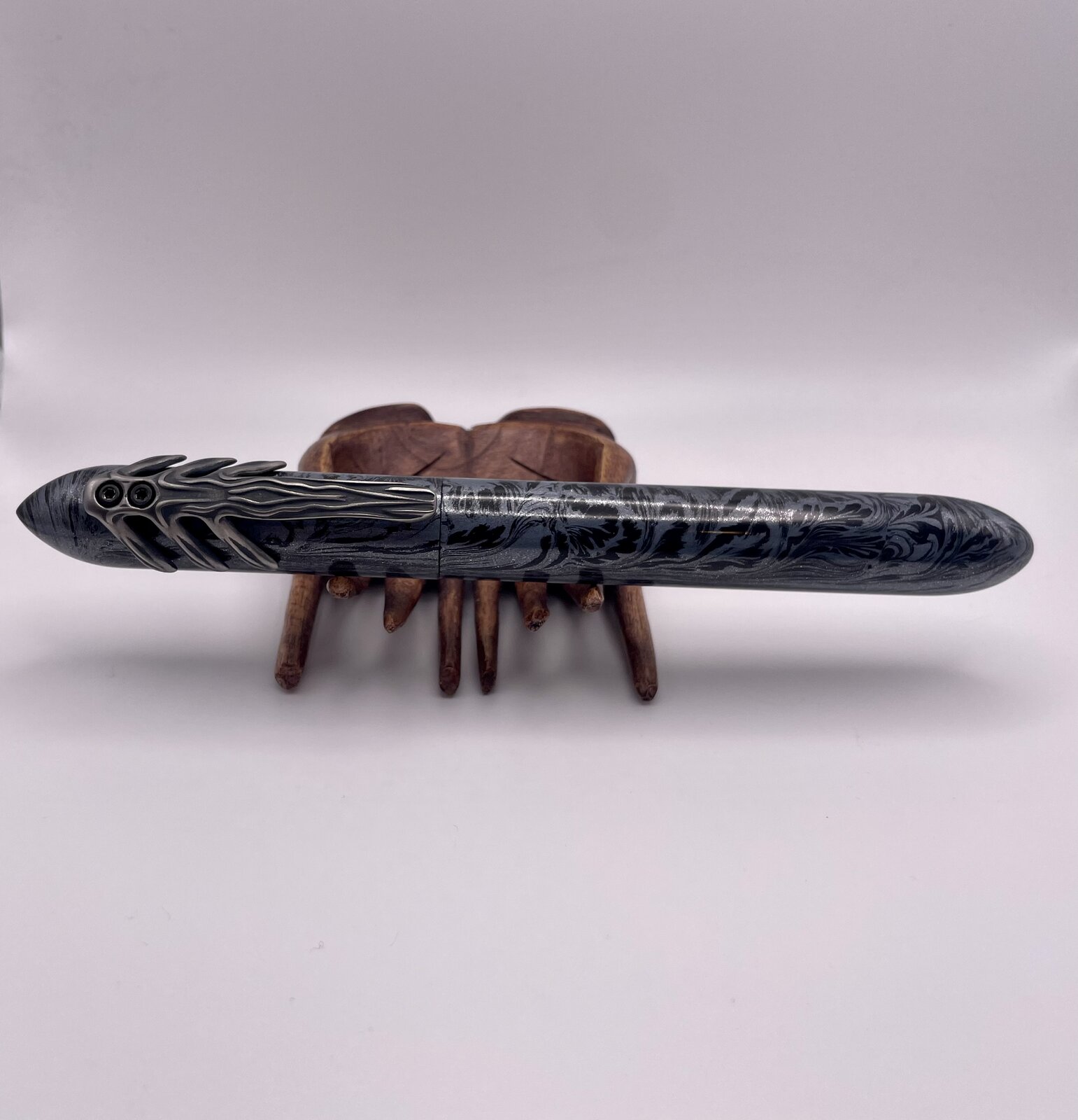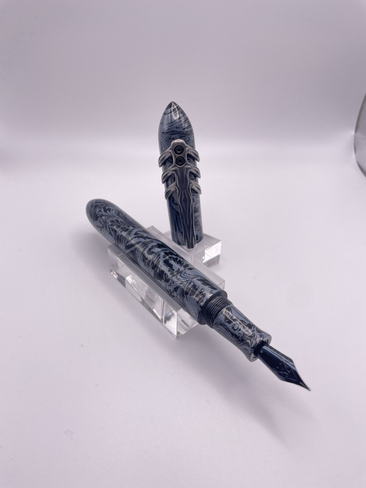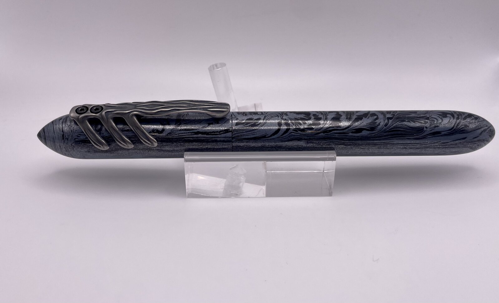 This is an Alien inspired pen made from M3 I got at this years Mid-Atlantic Turner's Expo from McKenzie Penworks. I don't remember where the clip came from other than I got it from a table at a pen show. The nib is a black Jowo #6. I am always interested in your feedback. I'm thinking it needs an acid green ink.