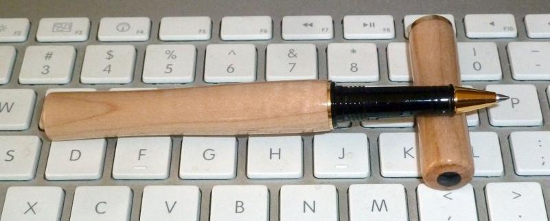 While ago, I bought Artisan Panache kit from CSUSA because it's contemporary look. I successfully made it but I didn't like using it.:mad: It looks interesting on the table but you will disappoint once you start using it. It's top heavy shape makes it difficult to write. So, I decided to alter the shape more comfortable for me, and this is the result. I disassembled and discard metal end caps for lighter weight and shaped orthodox closed end style. I'm not sure but the wood is maple I guess, It was scrape found in the shop. The black dot on the cap is ebony inlay to coverup the hole I accidentally made.:tongue: Although it won't stand like Panache, it's well balanced and comfortable to write now. This is also my first closed end pen.:smile: As always, any comment and suggestions are welcome. Thanks for looking. Yoshi