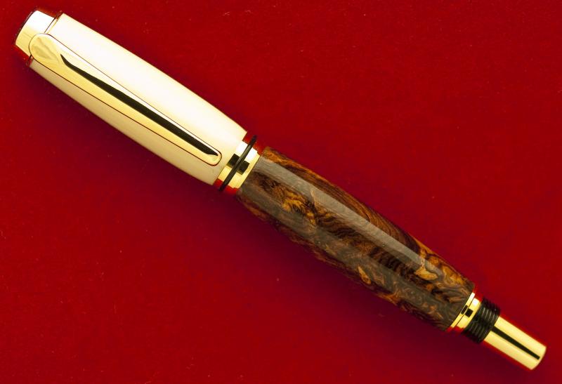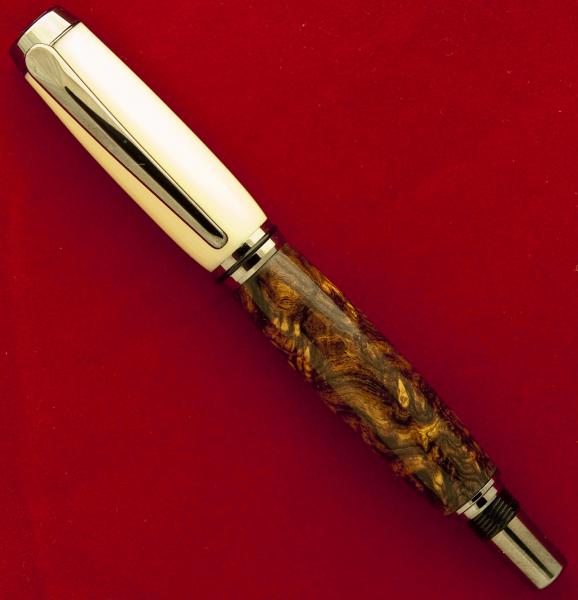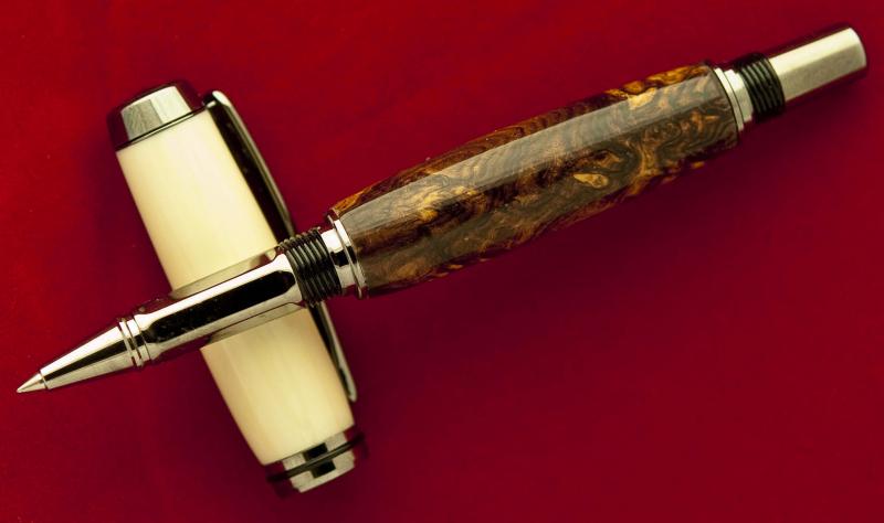 Made it this A.M. I had a left over piece of Alternate Ivory Rod and piece of my favorite wood, Honduran Rosewood Burl, and made this pen. It's on my usual Black Titanium Navigator Rollerball. I got a dozen Navigator kits in my Christmas basket