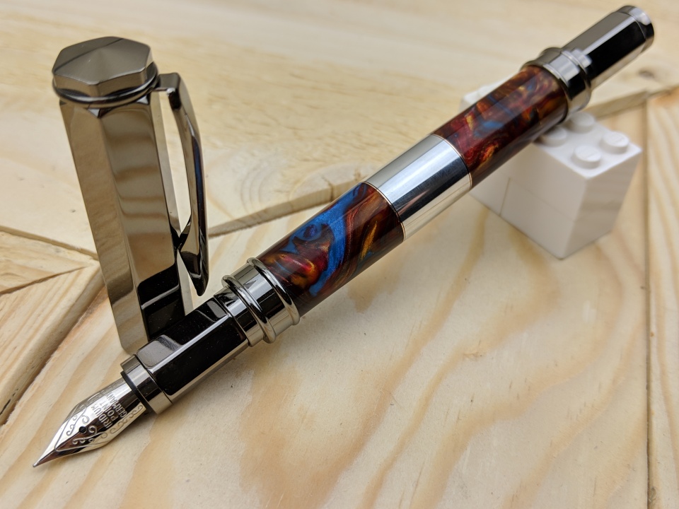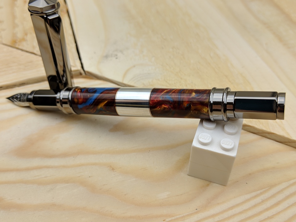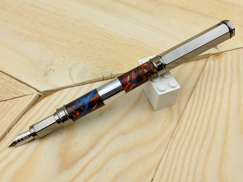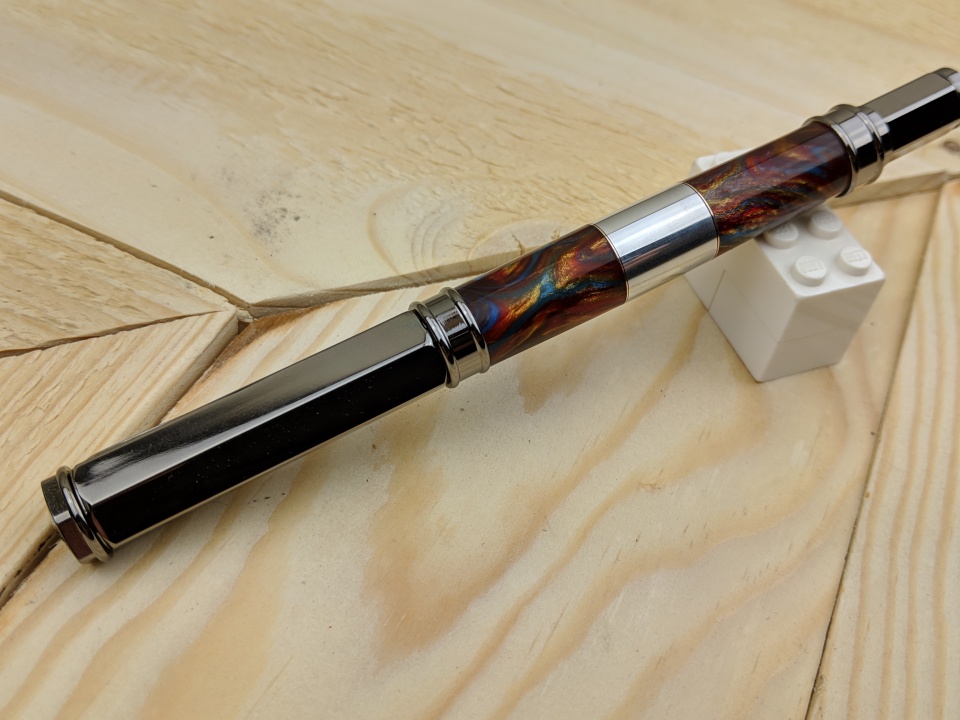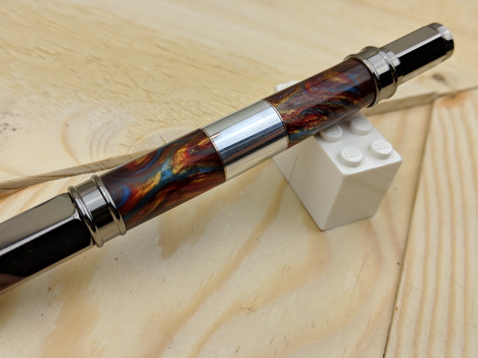 Tried my hand at a bigger section of aluminum, there are also thin strips of copper on each end of the aluminum. Then I used a cut off of some alumilite I had laying around. I just use one of my old carbide bits for my chisel when cutting the metals.