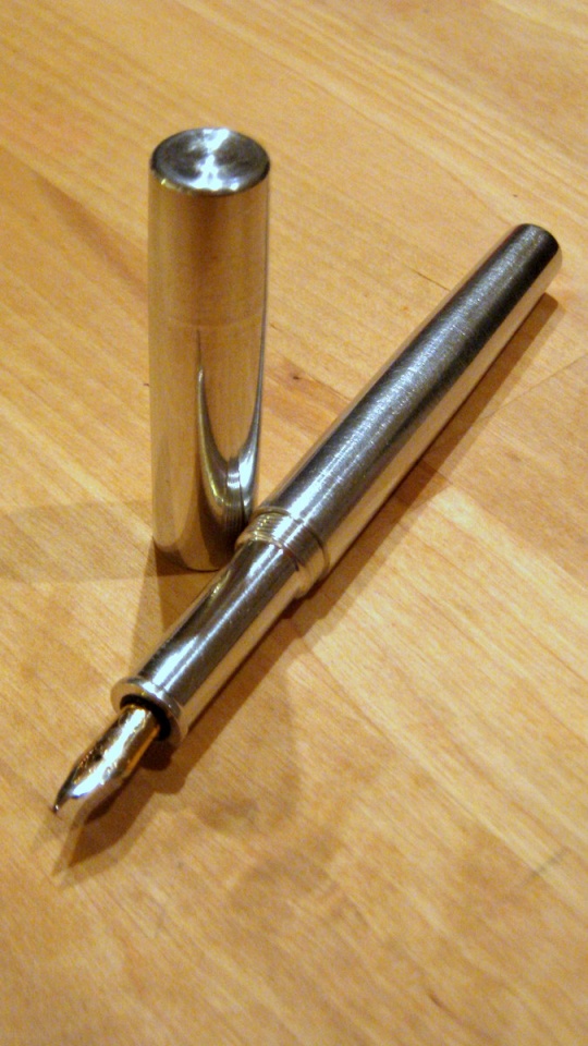 I didn't realize how long it had been since I had made a fountain pen until I fired of the lathe. This pen was a first for me in a couple areas and also helped me get my taps, dies, and tooling back in order from a long break. Once I was done with this one I was online ordering a couple new drill bits and some metric taps and dies that will make things a bit easier. This one still needs a trip to the vibratory tumbler to clean up some of the tool marks. I am also contemplating adding a clip, but since this will mainly be a reference pen it is not a high priority.