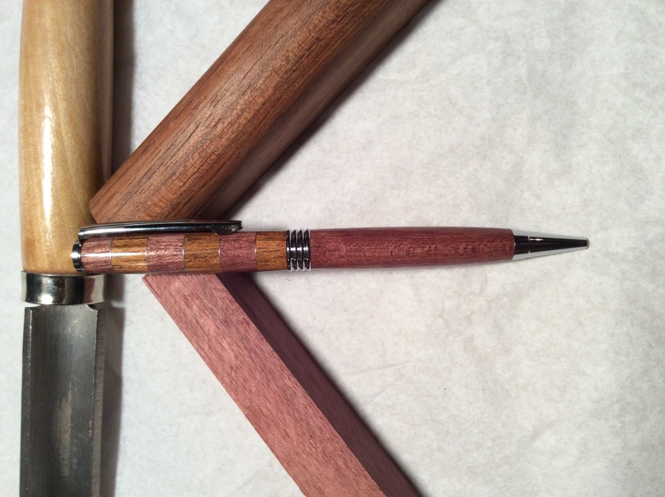 Did my first segmented pen today. It is Brazilian Cherry and Purpleheart with aluminum. As the title states, the aluminum sticking out of the glued up blank cuts like a scalpel. Need to buy stock in Bandaids. Used Gorilla Glue and let it set for 24 hours. Please feel free to comment. It helps me get better.