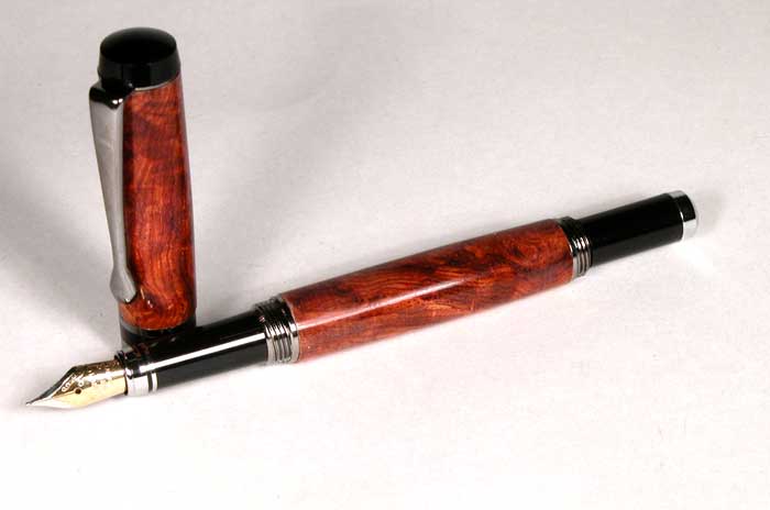 Although this is about my least favorite kit, I had a request to do one in Amboyna, actually this is the first Amboyna I've turned, it surprised me, I thought it would be very hard and super dense, mayhaps I got my tools a bit sharper than I thought.