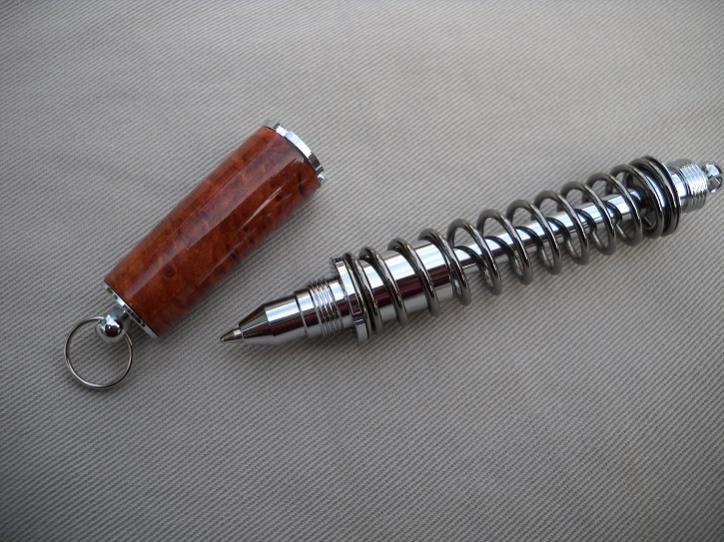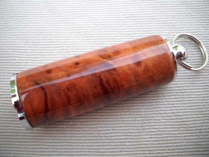 California Redwood Lace Burl on a shock absorber. Had to fill some of the voids with sanding dust and CA. Made this for a neighbor that loves hot rods and watches our pets when we go away.