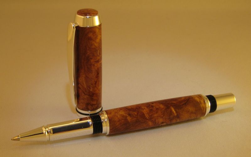 Had to try something new, and I had this nice peice of Amboyna Burl. So, Here is my first Polyurethane Finish (Thanks Les for the tutorial). I put it in a Sterling Silver Baron and topped it off with a matching finial.