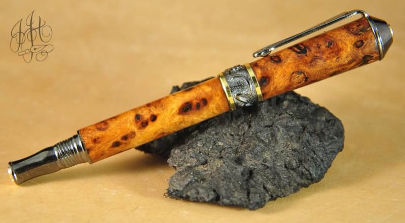 Broadwell Nouveau Sceptre Black TN & 22kt Gold wrapper with this beautiful Amboyna Burl. I had a time with that piece of wood, but I think it was worth it...