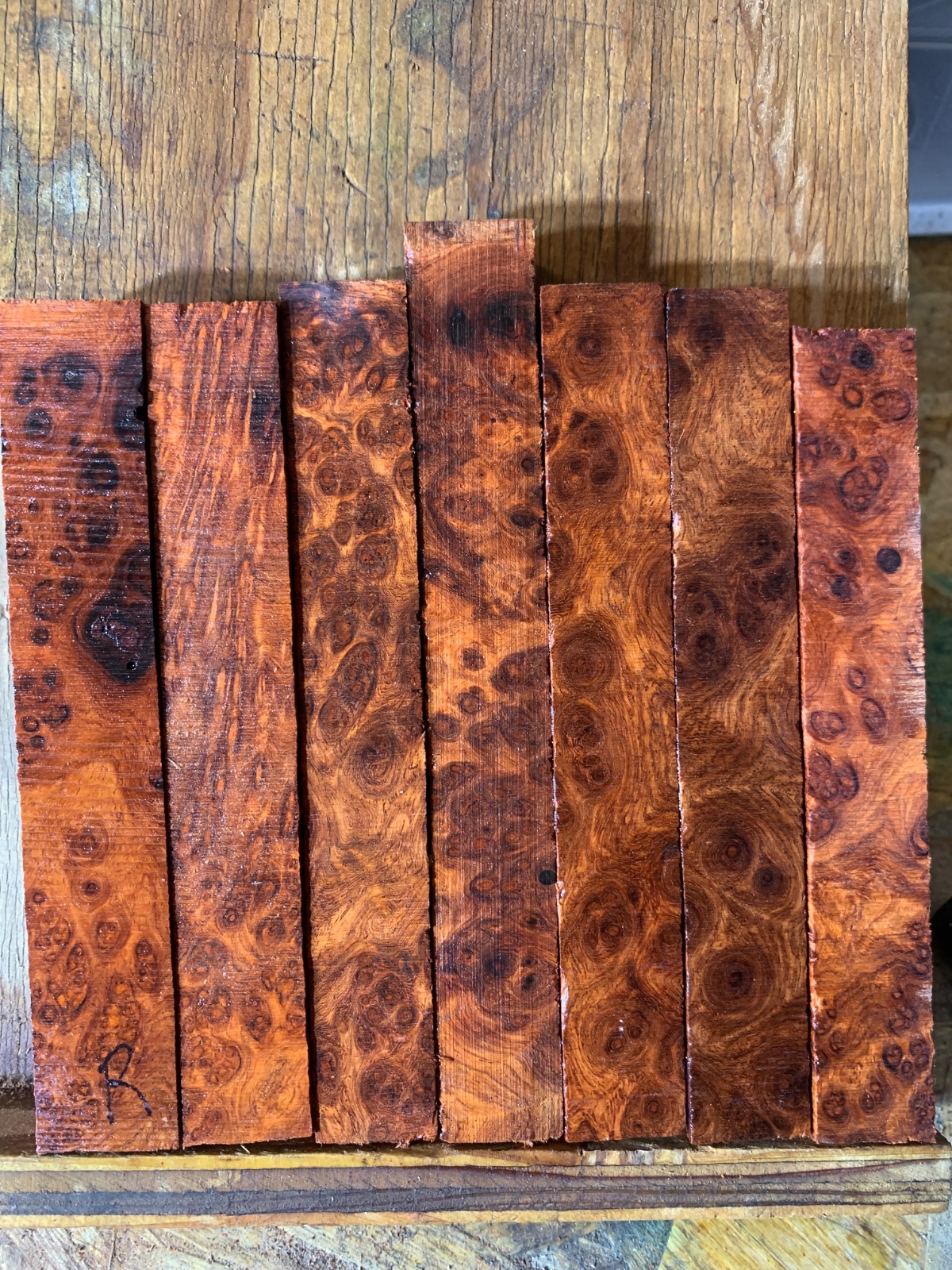 I have two groups of heartwood blanks. Group Q is like 5.75 inches long by 3/5. Group R is 3/4 x 5. Group Q. Each group is $35 plus shipping.
