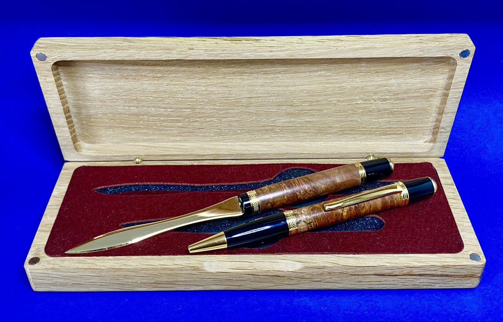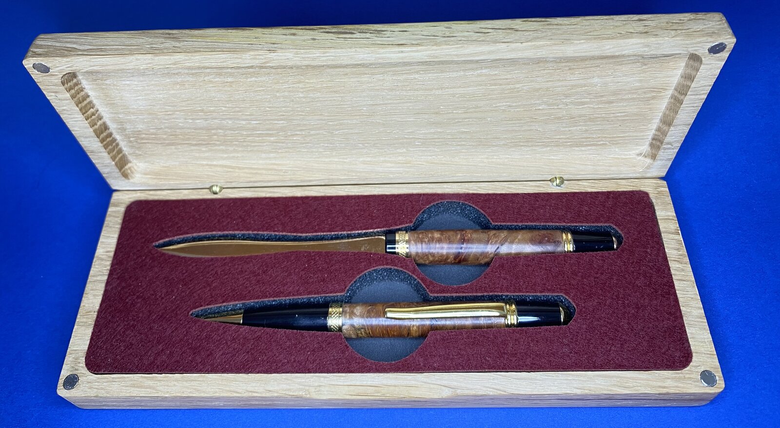 Amboyna Burr wood Sierra pen with matching letter opener.