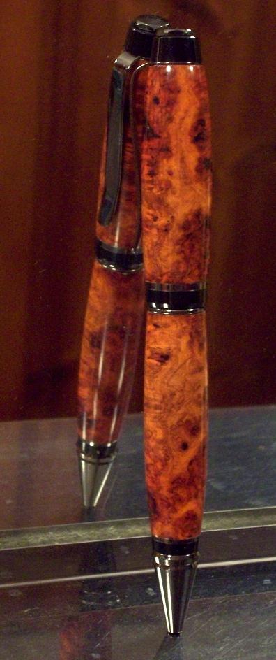 Just finished this yesterday. Ive turned amboyna and cigars but never an Amboyna Cigar. I like the color and character. Amboyna is like the prize in the cracker jack box. Black Ti seemed to fit. 5 brushed coats of dipping Lacquer then polished with EEE. Thanks for looking!