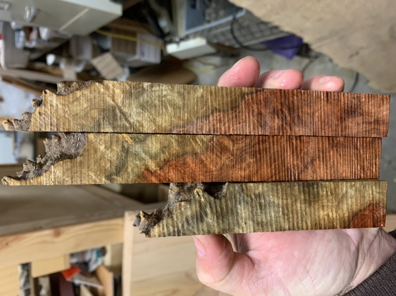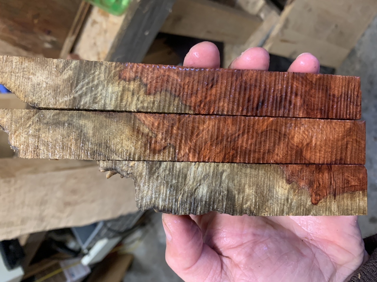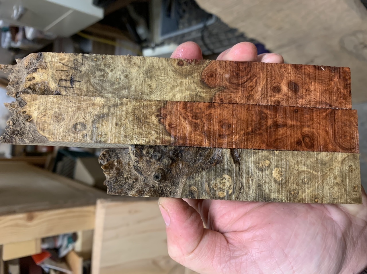 I also have three amboyna two tone blanks with natural edge for casting. 7/8 x 4.5-7.5 long $36 plus shipping