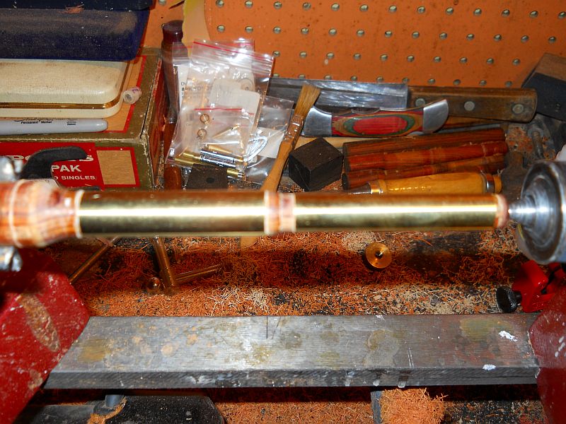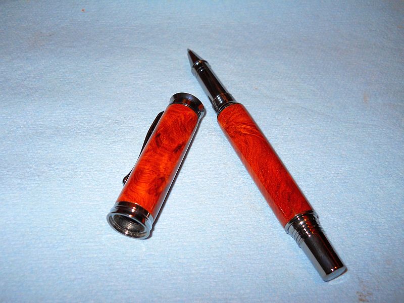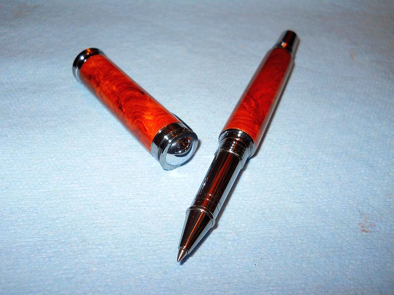 Black Titanium/Rhodium Retro dressed in amboyna.Took a new step with this one.I decided to do both barrels together so I made my first stepped mandrel for friction fit turning.What do you think?Q.C.C. welcome.