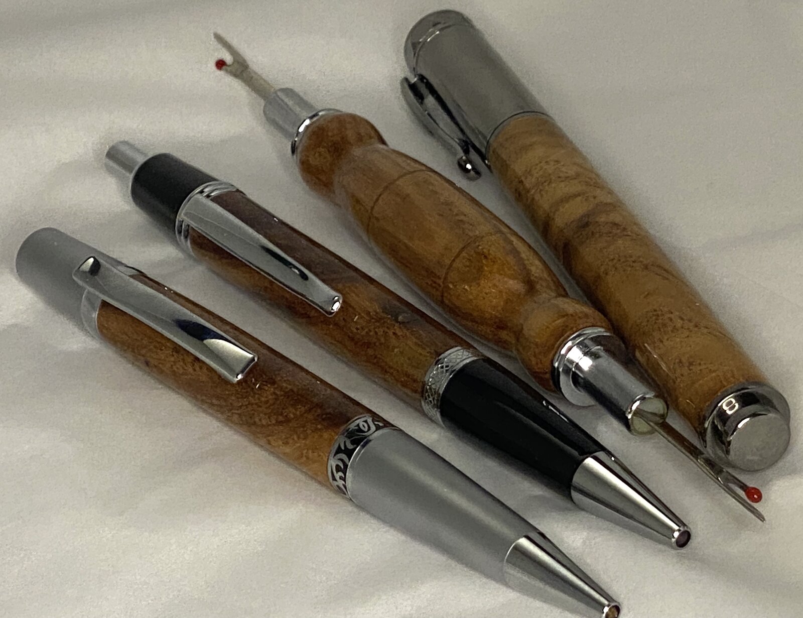 Years ago I helped clear out my Grandfather's shop after he passed. He taught me to turn bowls. So, I GUESS I graduated backwards to pens. In the process of cleaning I acquired an American Chestnut board. My Grandpa had four children including my Father. I happened upon the board about a month ago and decided to make some things for them. It has been a few years since I shared anything.