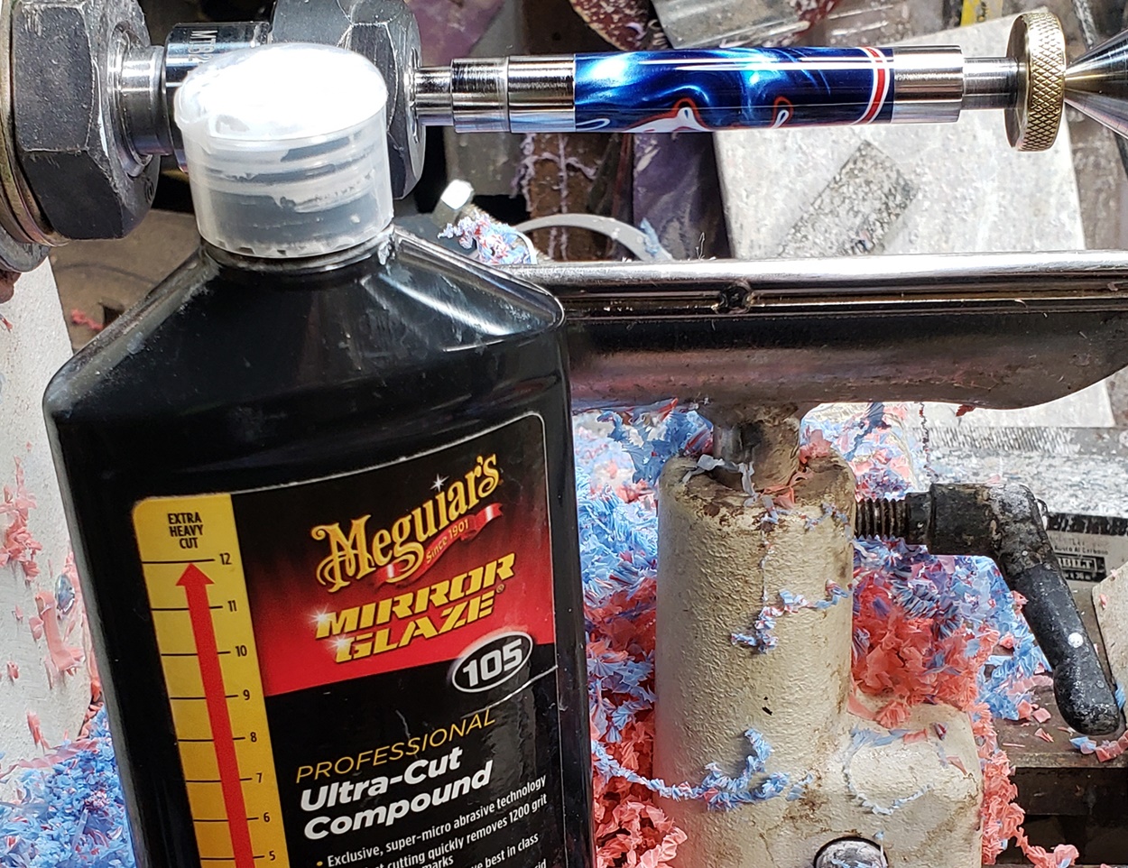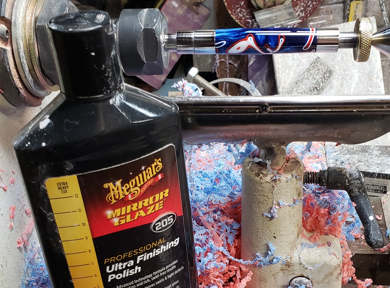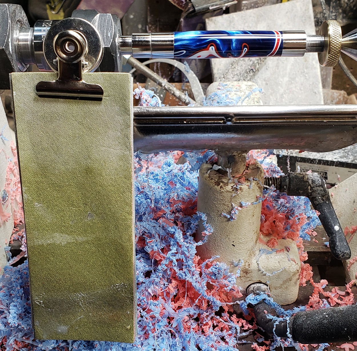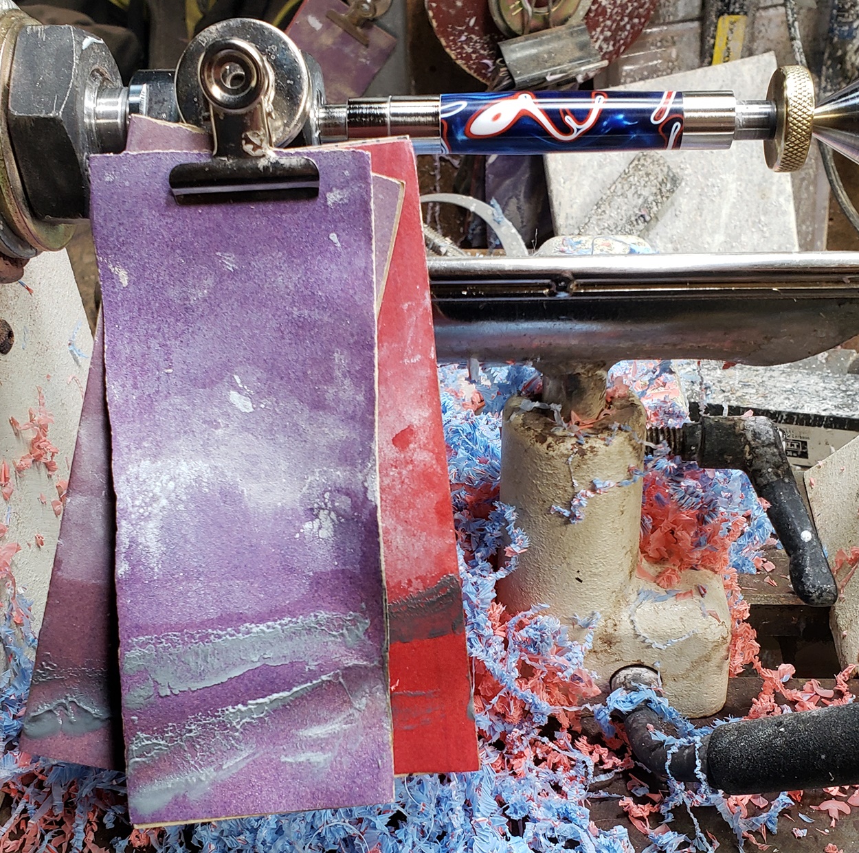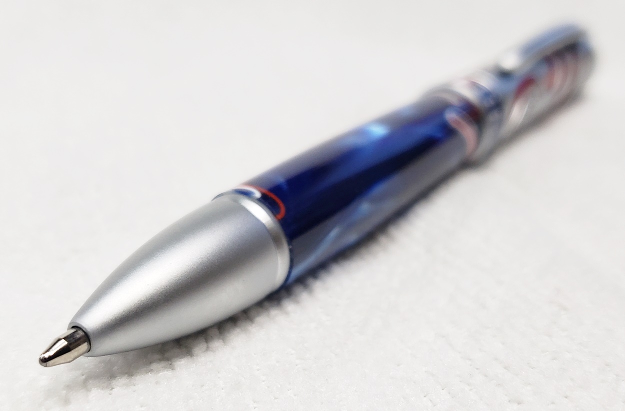 This is a PSI American Pride pen in satin chrome, and is my second. I love love love the details in the filigree! The red, white, and blue blank is a Kirinite Patriot, and looks great with the pen. The red blank is a Football Team Color, also from PSI. Very happy with this one.