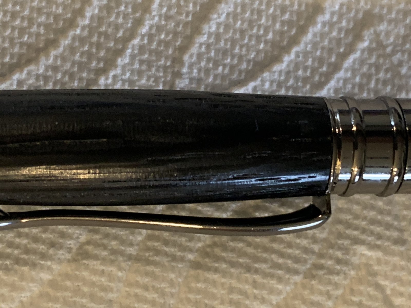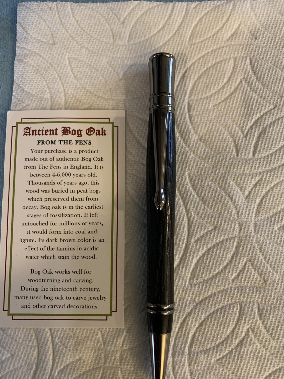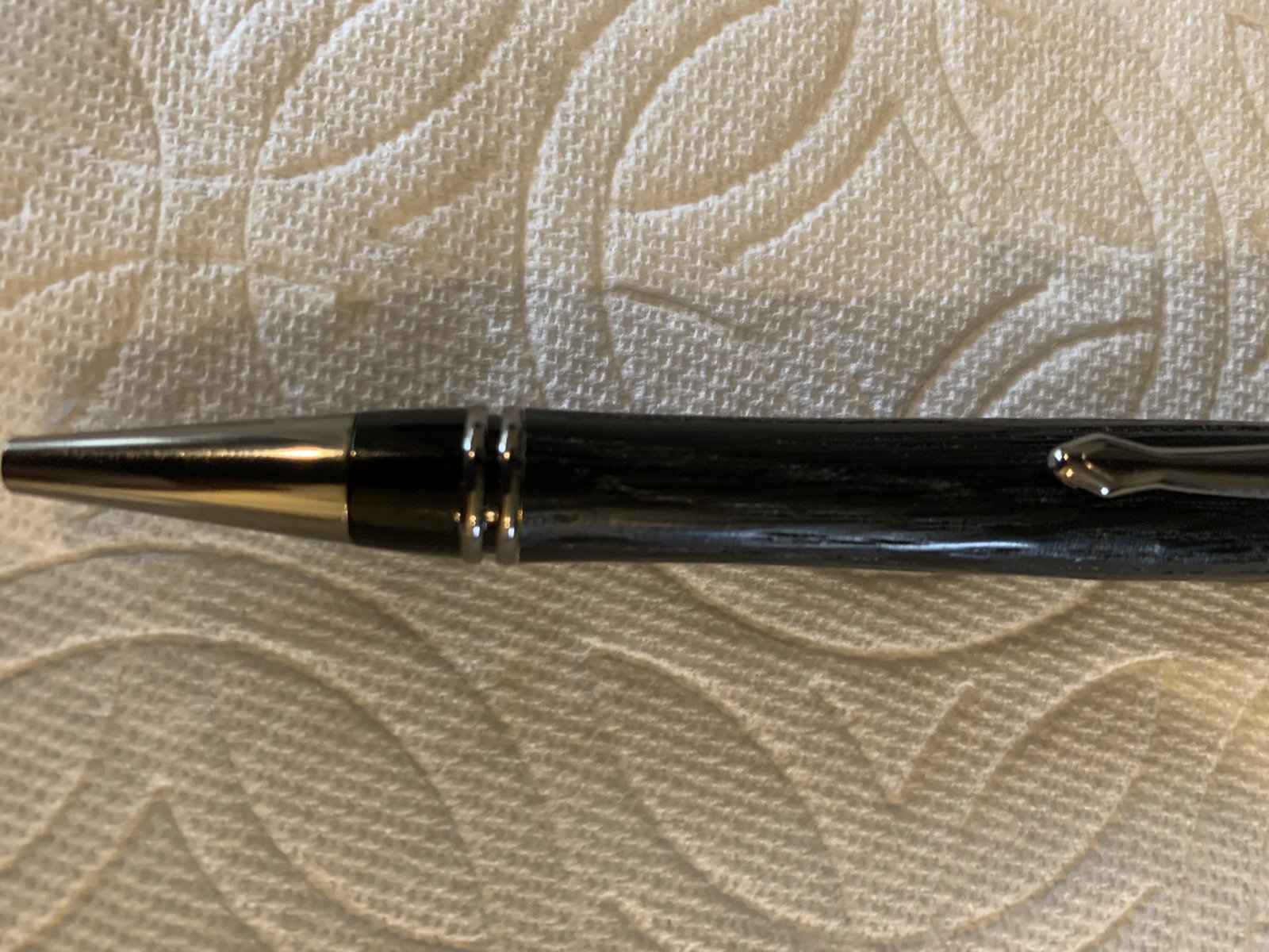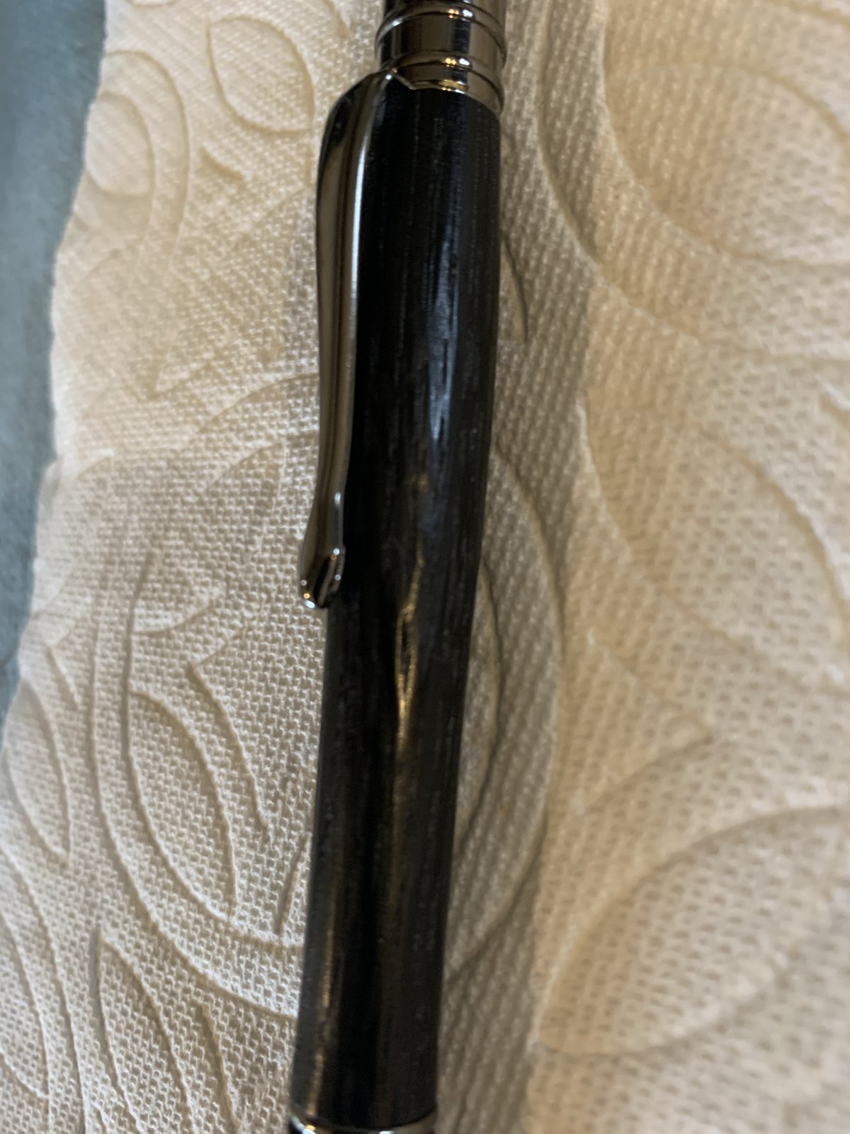 Turned a piece of Ancient Bog Oak and I will say that trying to turn this blank was NOT fun. Had to sharpen my tools twice, not that the wood was so hard it was the wood itself. The finish is wet sand with walnut oil to 12000 grit and 7 coats of Pens Plus and 4 coats of wax. I loved the outcome more than the turning. Hope everyone is staying home safe.