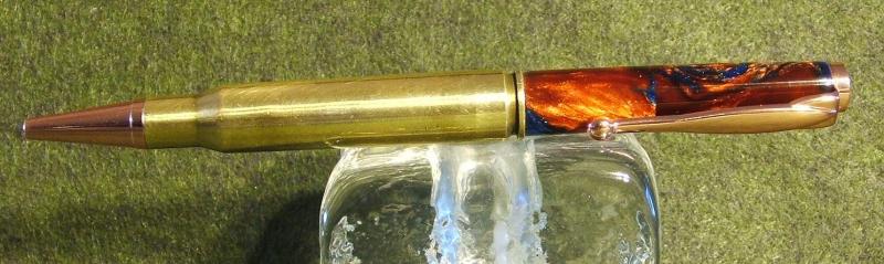 I liked the Mars blank so much, I used the left over piece to make this 30.06 Fun line copper accent pen for a friend that is a fellow Range Master where I work. I had to split it in half and glue it back together end to end to make it long enough, being careful to alien the book ends. Any comments or thoughts are welcome.