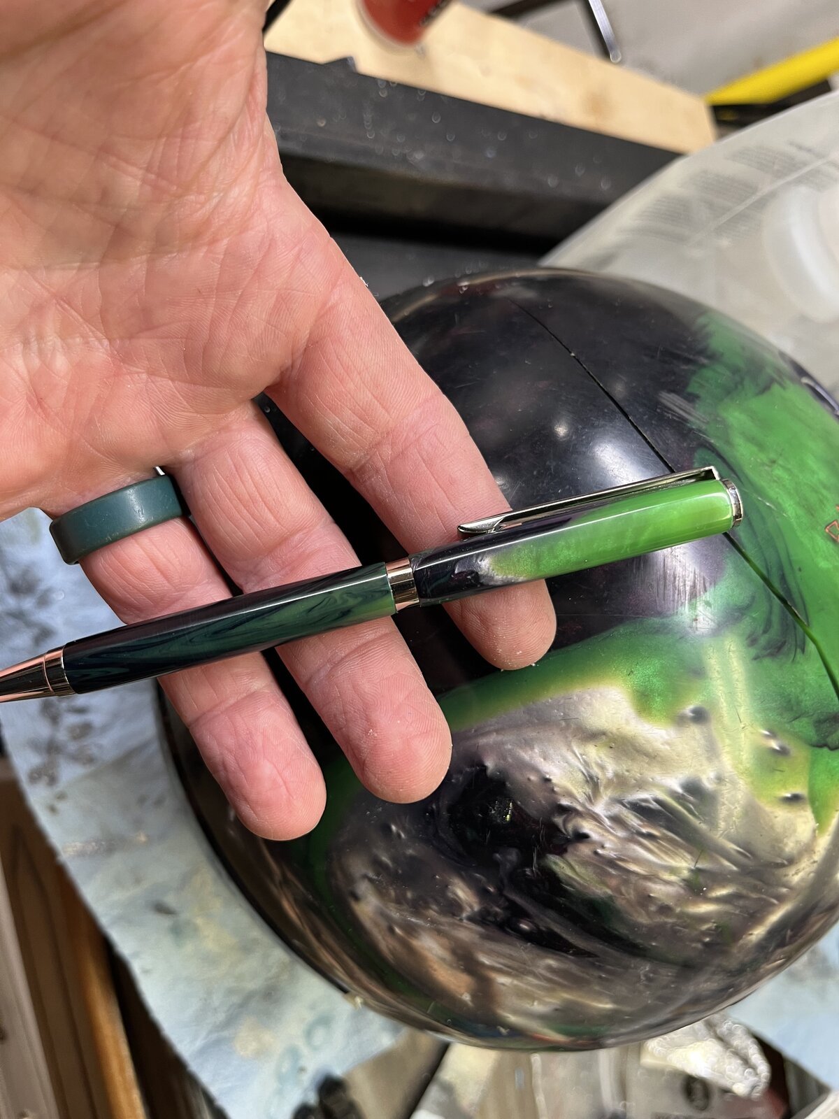 Paul in OKC said: With key ring. Click to expand... Green is my favorite, this is my favorite bowling ball pen for sure.