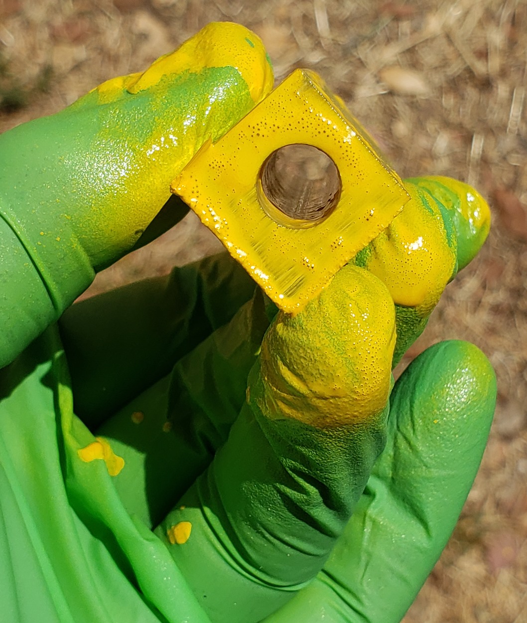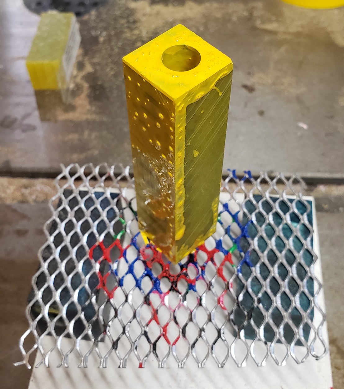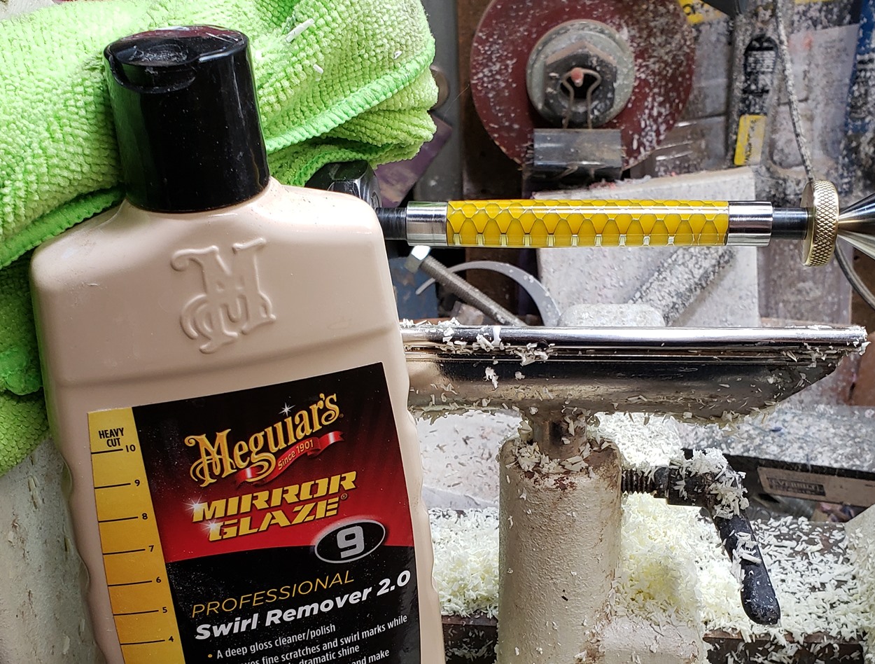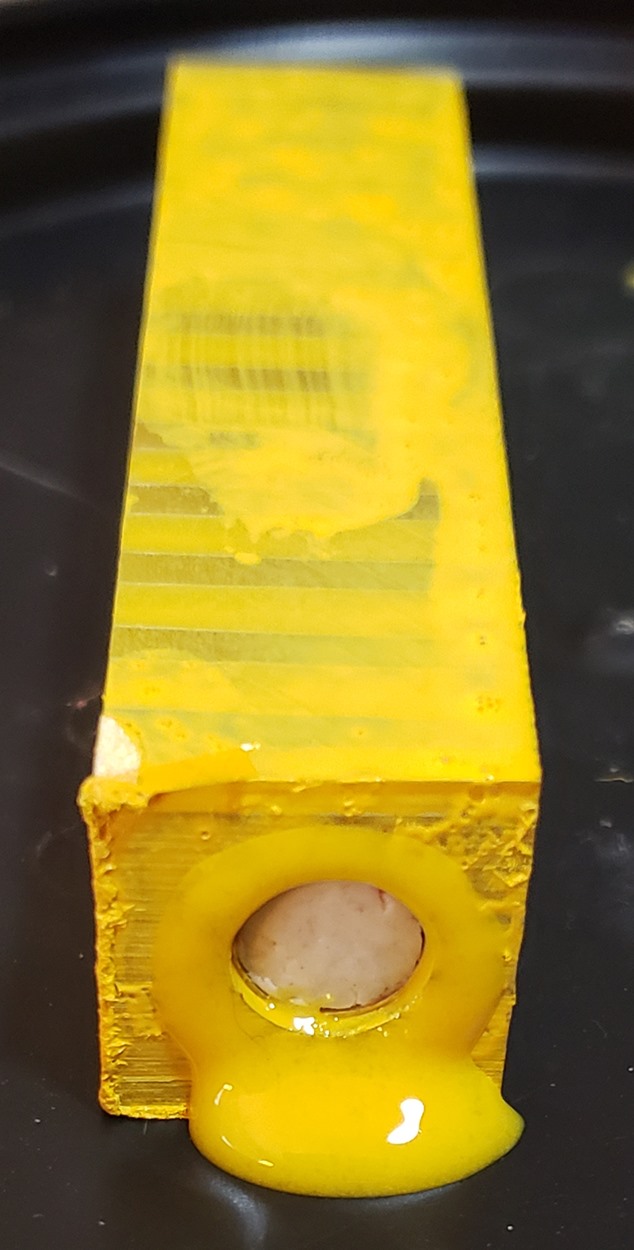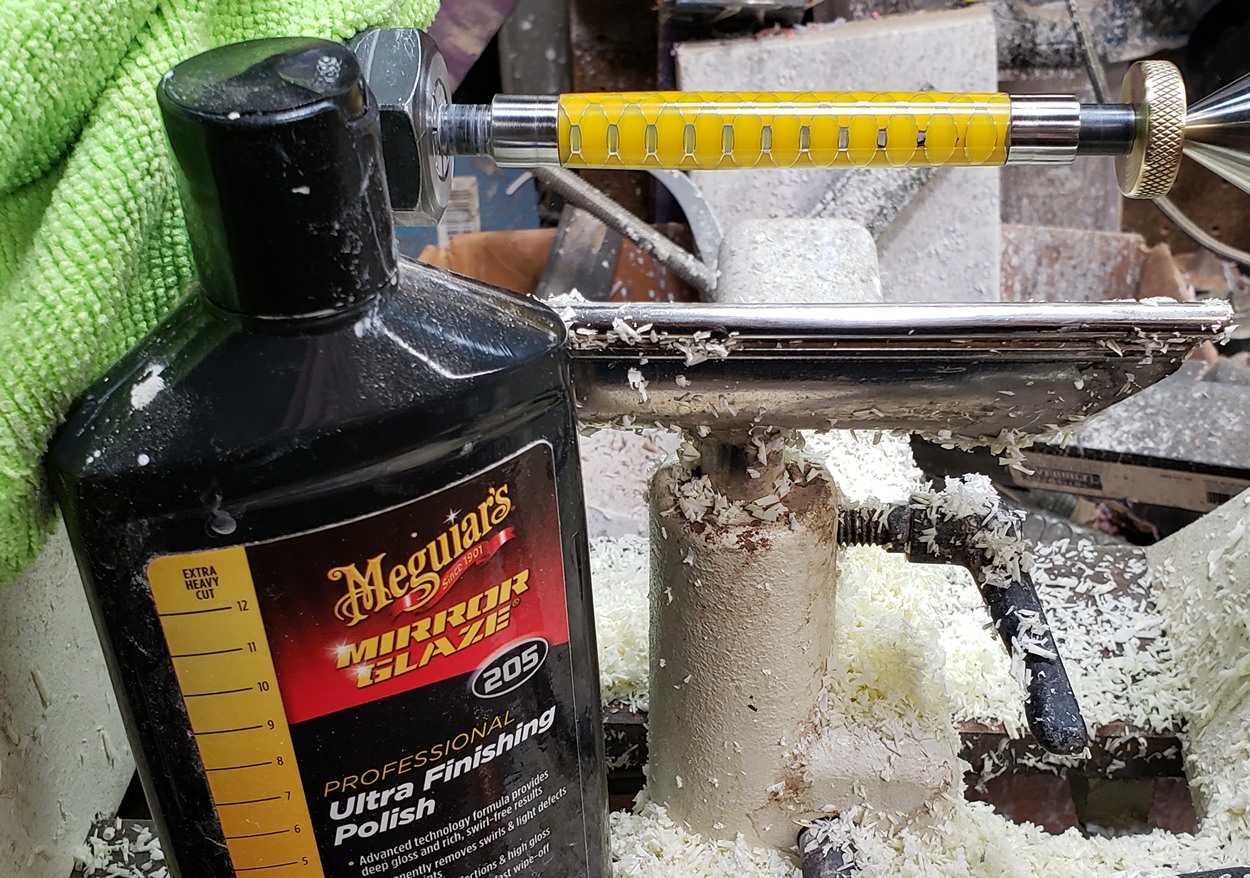 This is an Annular pen, in gunmetal, from Crooked Mill. It's identical to the PSI Knurl GT. I'm not sure why they chose the name Annular, it means "ring-shaped". But whatever. The blank is a yellow Honeycomb from Woodcraft. I've turned other Honeycomb blanks, in blue and red. I didn't know if I'd like the yellow, but I do.