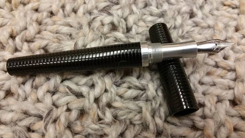 BradG Member Joined Jul 10, 2011 Messages 1,735 Location Blackpool -UK Mar 22, 2017 #1 Today's craft completes the creation of a jet black aluminium, handmade fountain pen, with gentle ribbing throughout it's entirety. Featuring a JoWo Medium nib Attachments bl1.jpg 117.9 KB · Views: 407 bl2.jpg 71.5 KB · Views: 400 bl3.jpg 82.8 KB · Views: 414 bl4.jpg 65.7 KB · Views: 407