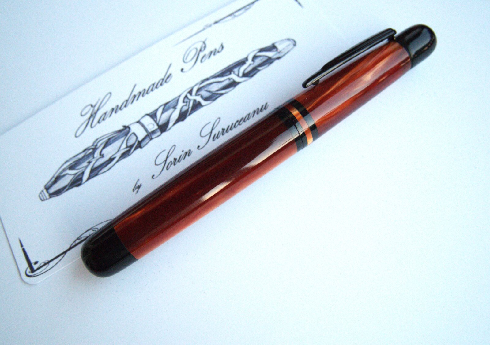 S sorins Member Joined Aug 6, 2021 Messages 78 Location ROMANIA Jun 23, 2024 #1 New from the workshop! Acrylic with ebonite for the section, finials and center bands, Bock #6 EF nib. Attachments P6180001.jpg 174 KB · Views: 239 P6180003.jpg 227.8 KB · Views: 243 P6180004.jpg 445.4 KB · Views: 232