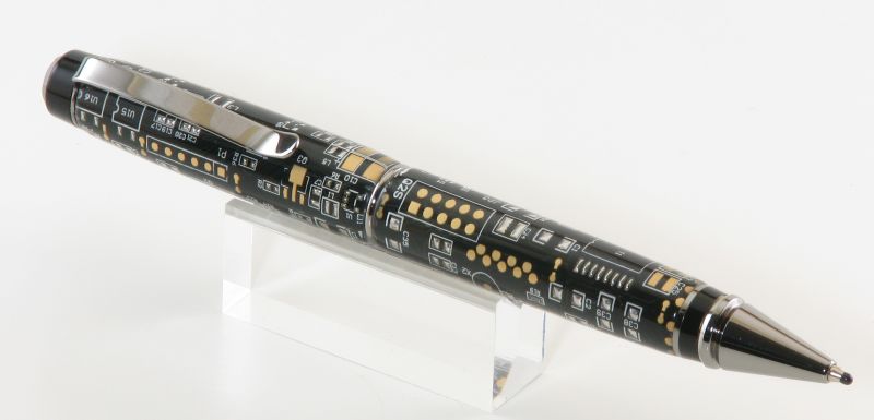 The circuit board blank is predrilled. So the lower (nib) portion stays the same length when cutting, of course. Then I cut the clip end to ~55 mm in length.That is a beauty of a pen. Cigar type pens, I really like them. What extra steps are needed to eliminate the lower parts of the the upper barrel?