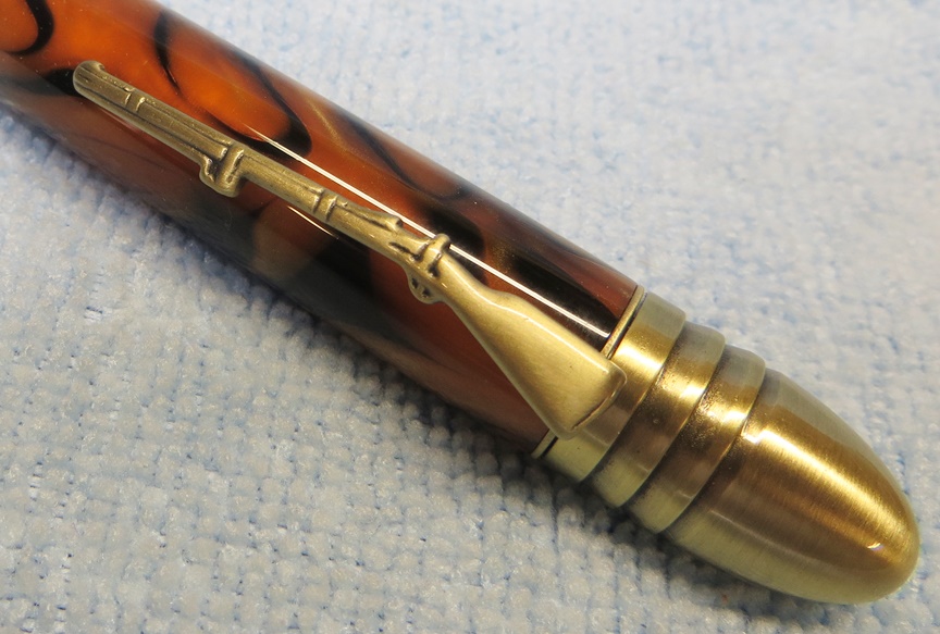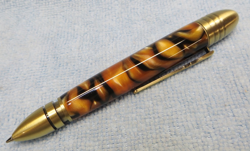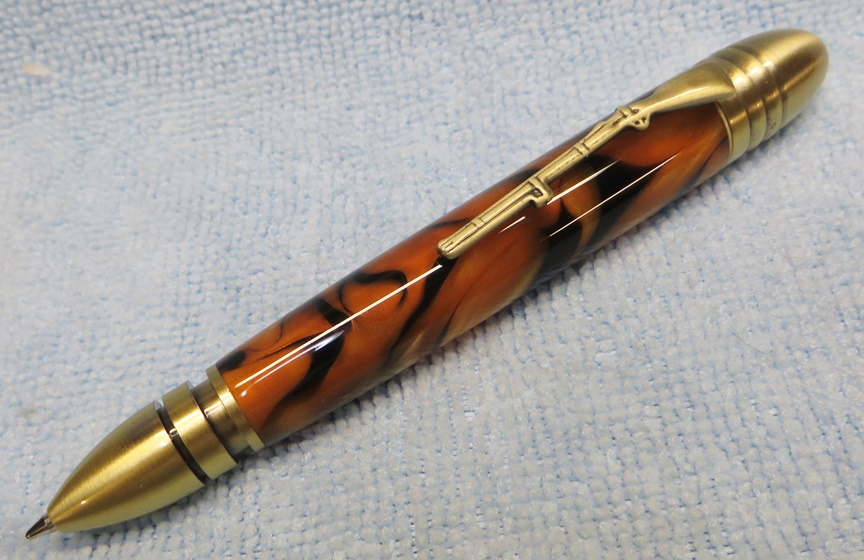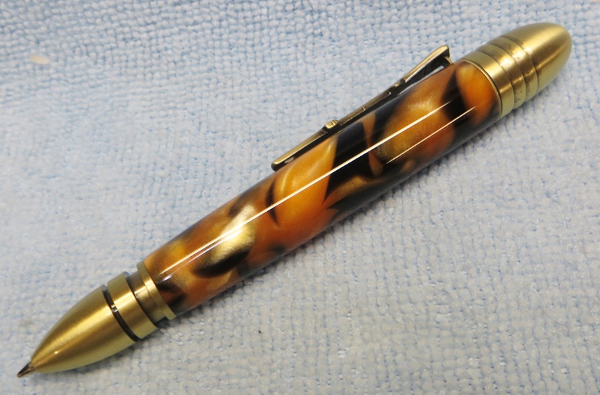 These are really growing on me. This one is antique brass, with a black and bronze acrylic acetate blank. It has some orange in it, but I don't mind. I think it looks good with the pen finish.