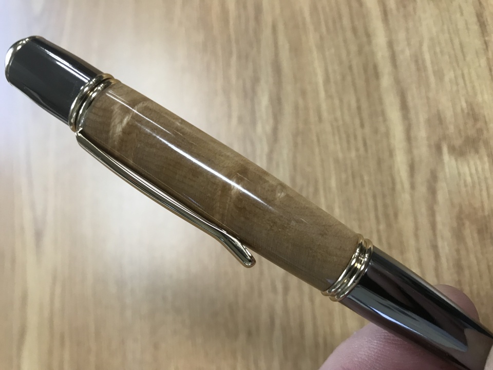 This is another pen using cross cut wood. It is birdseye maple on a Gatsby Grande. The finish is good but you can't see the holographic effect of the end grain as you rotate the pen. Quite striking.