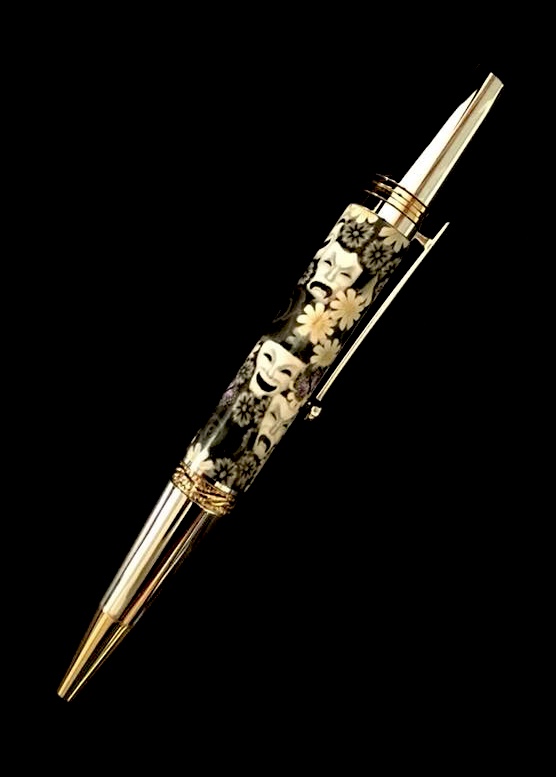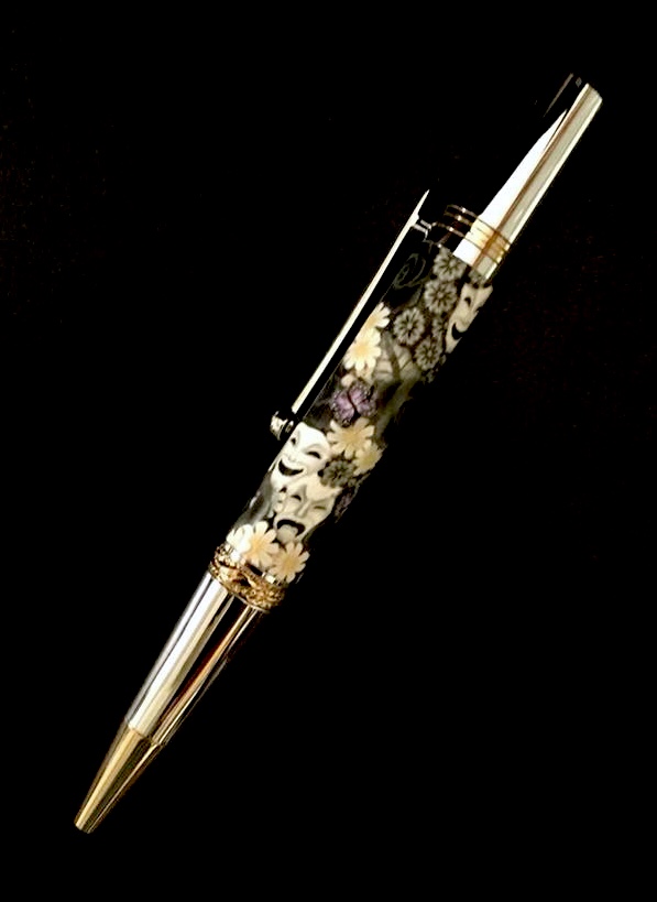My 13 year old son has a Theater teacher that has made a huge impact on him. This one is his Christmas present to her. Toni makes amazing poly clay works of art, all the credit for this one goes to her. I just took about 10/1000" off, sanded, polished, and coated with 8 coats of thin CA. Hope you like it.
