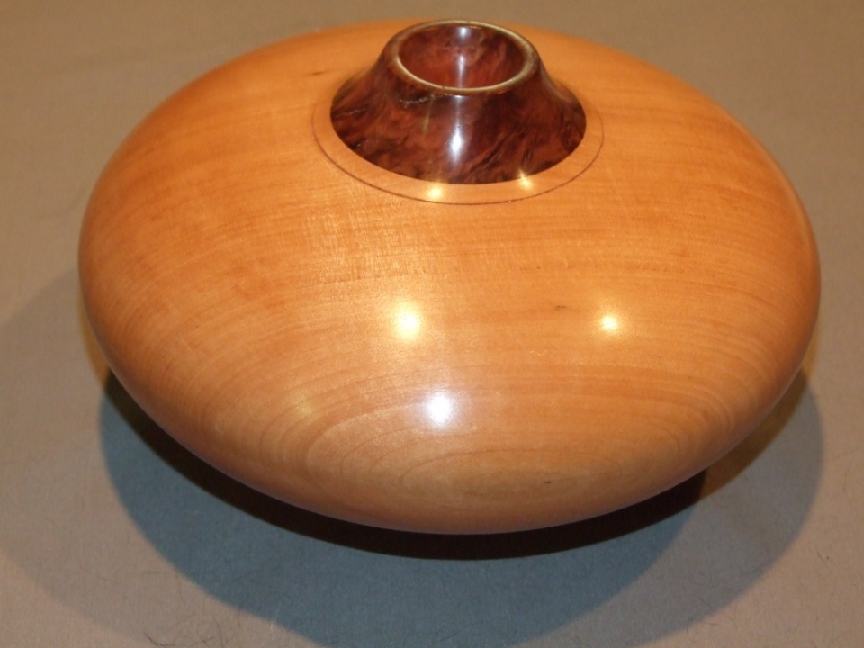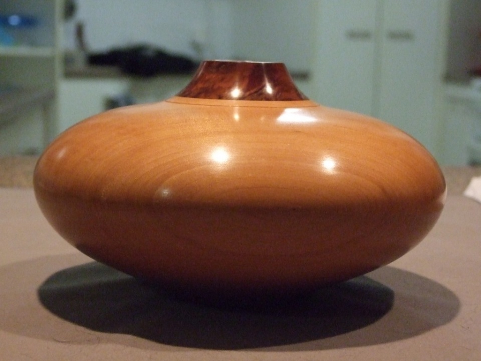 Heres another Hollow form I've just made. Myrtle and a burr collar, dont know which type of burr but its rock hard and absolutely stunningly figured.