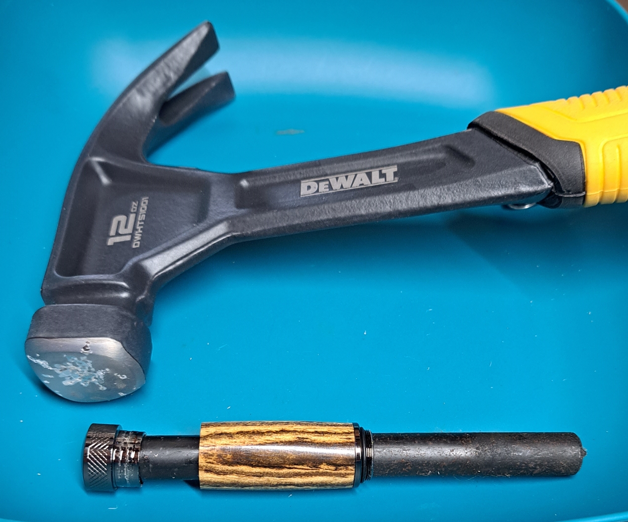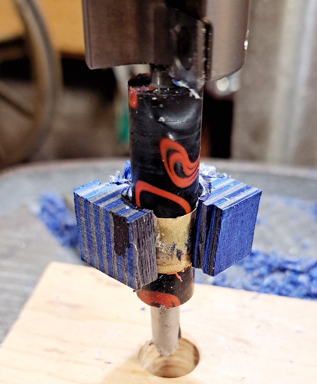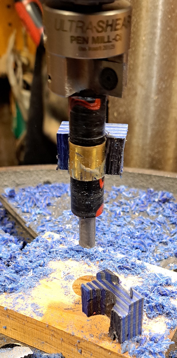 I've been working on the chrome kit, using SpectraPly. I've broken two pieces for the cap so far, during trimming. I think I'm going to use a piece of black acrylic for the cap instead, since I've already got the body piece of Spectraply trimmed and ready to turn.